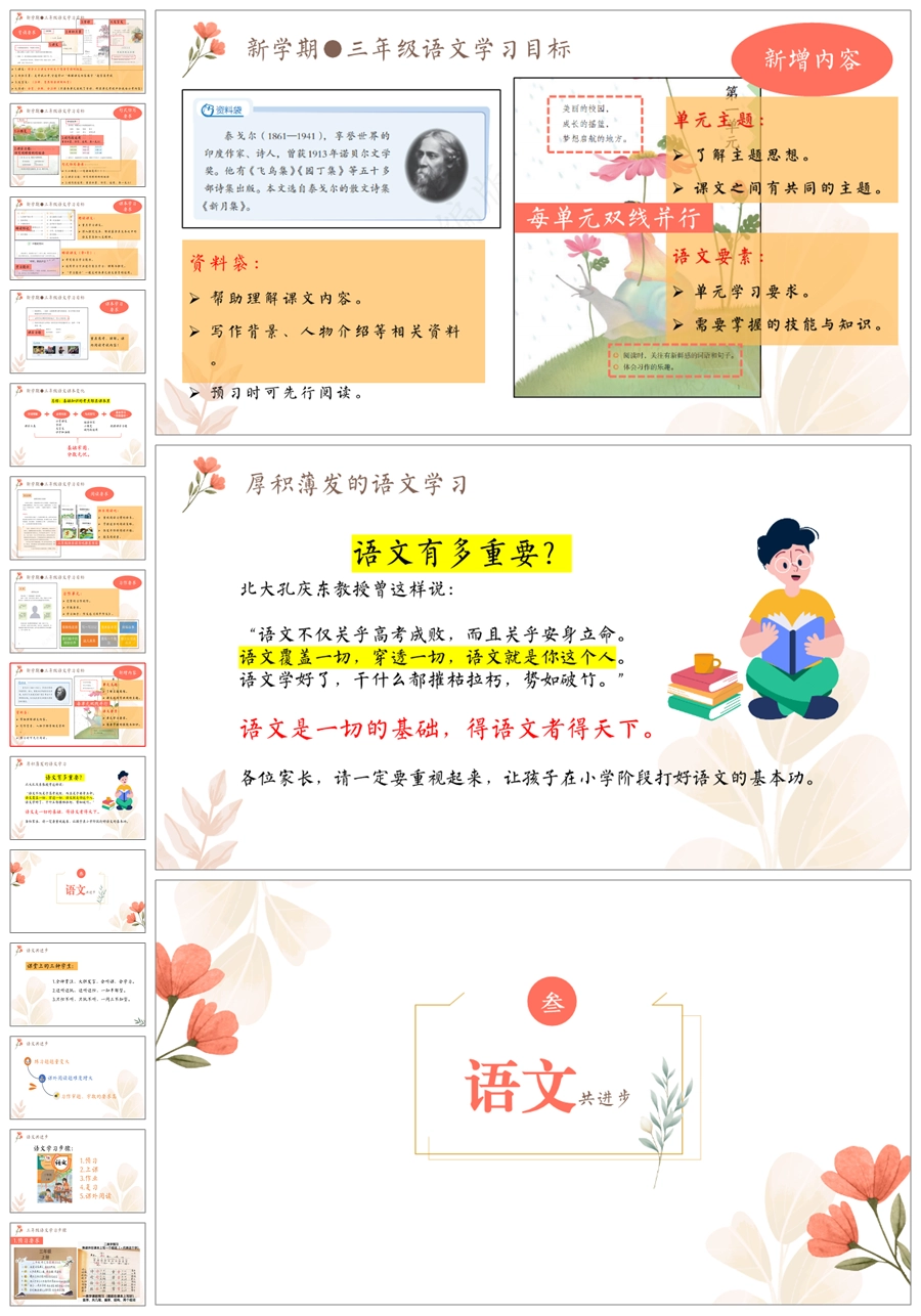 【5314】【三上】【语文】【迈向三年级 开启新篇章】三年级上学期开学家长会PPT课件+发言稿