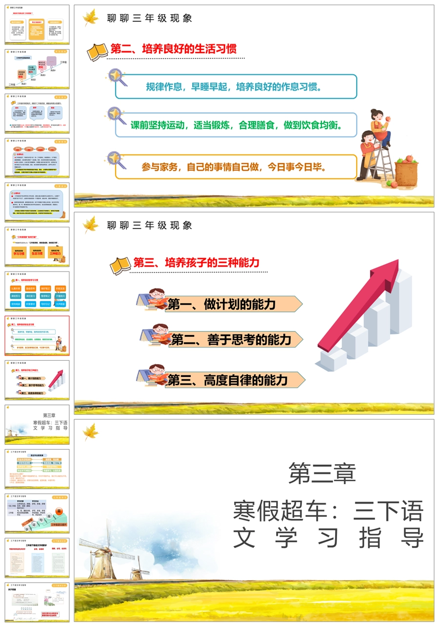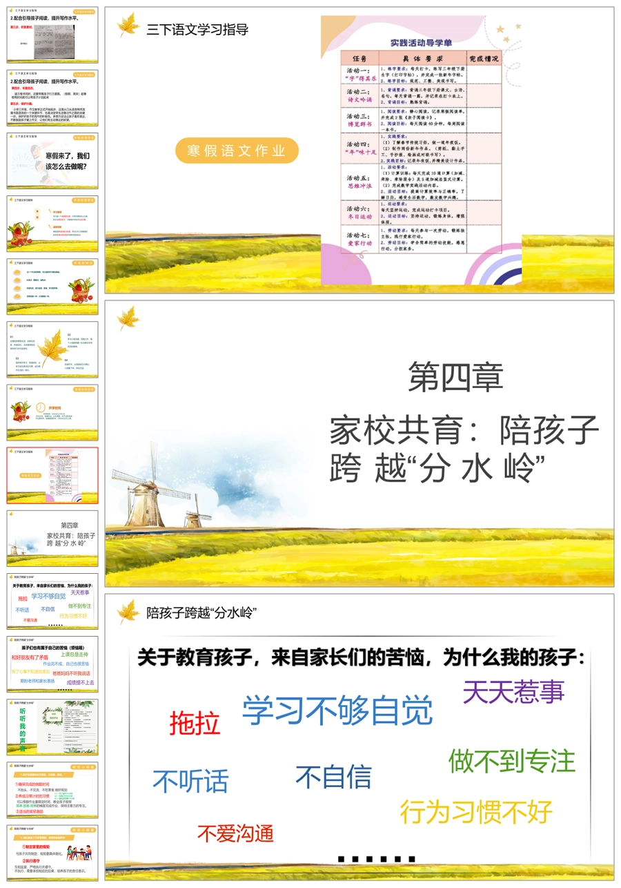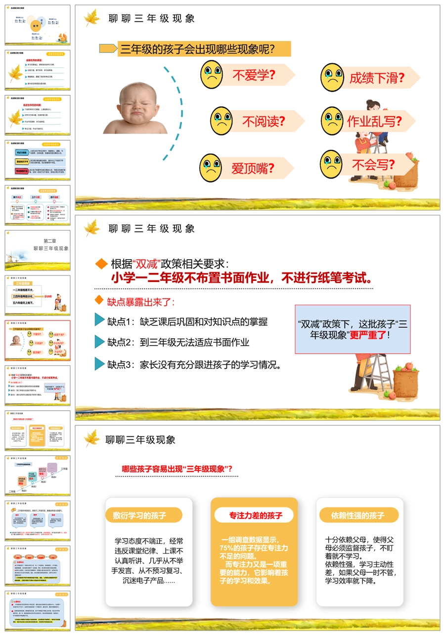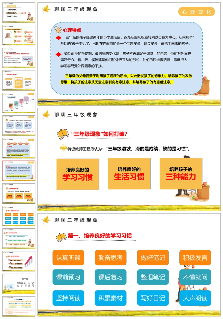 【5316】【三上】【语文】【三年级这道坎】三年级上学期期末家长会PPT课件+发言稿