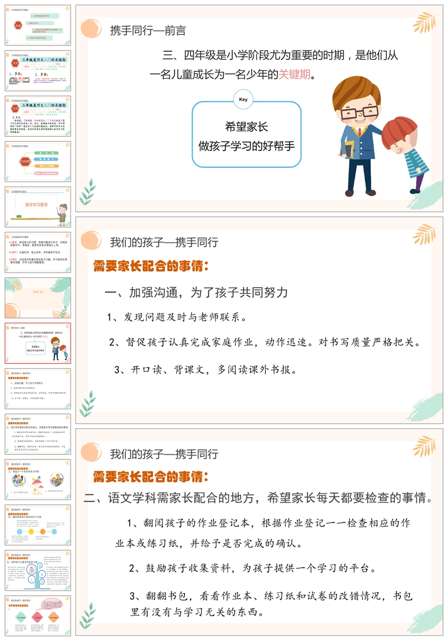 【5319】【三上】语文【以爱之名 携手同行】三年级上学期开学家长会PPT课件+发言稿