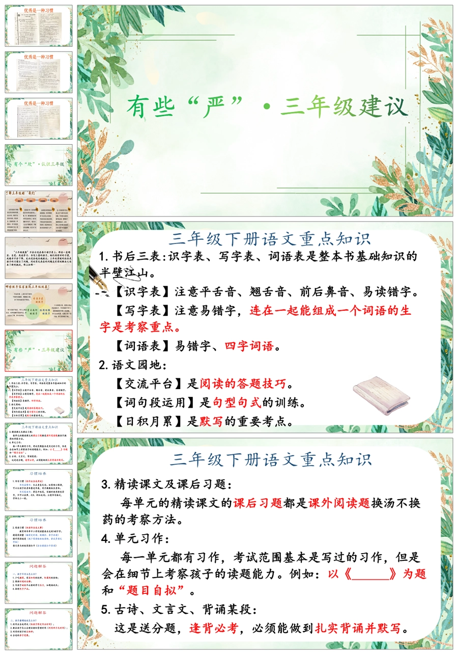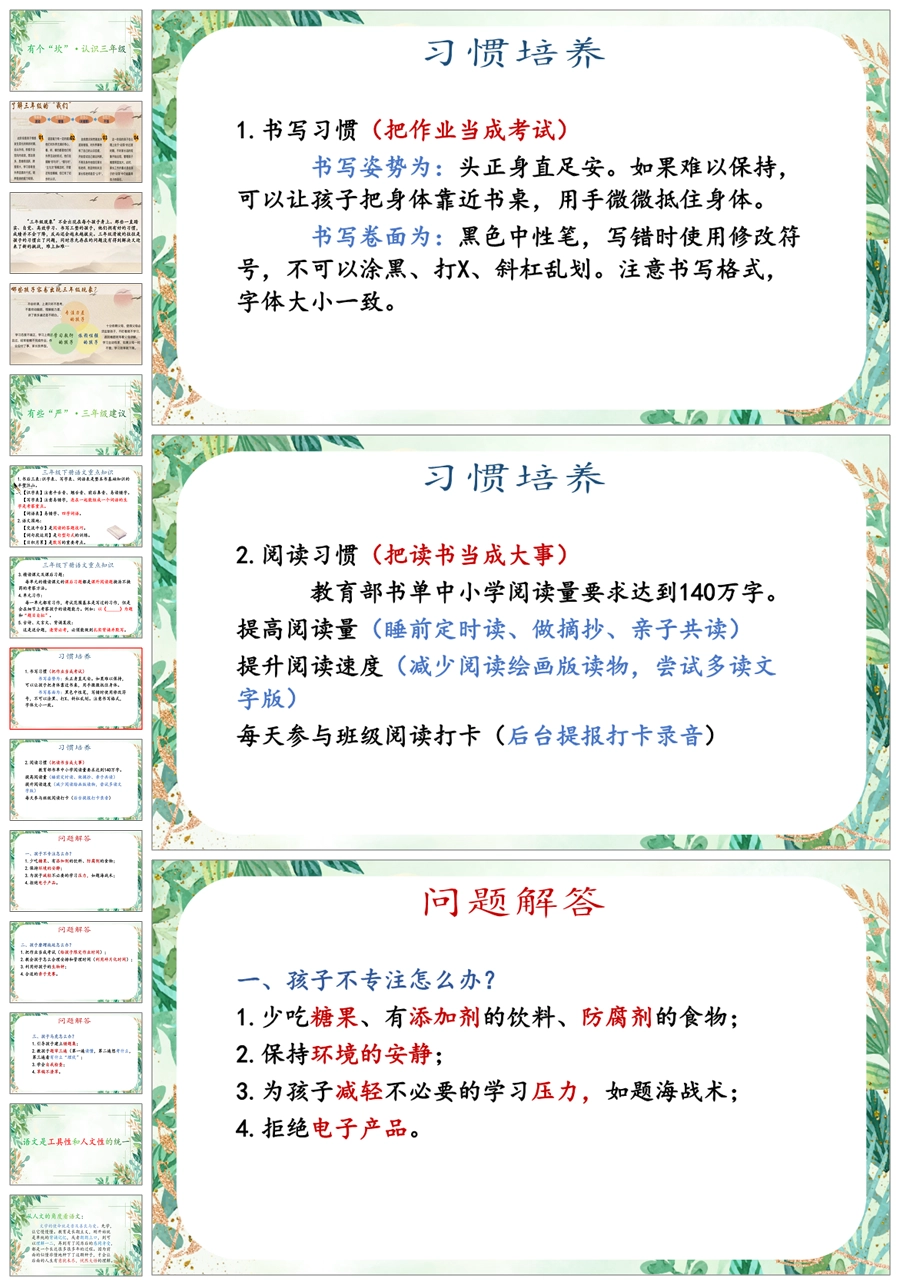 【5320】【三下】 【语文】【阅读悦美 共沐书香】三年级下学期期中家长会PPT课件+发言稿