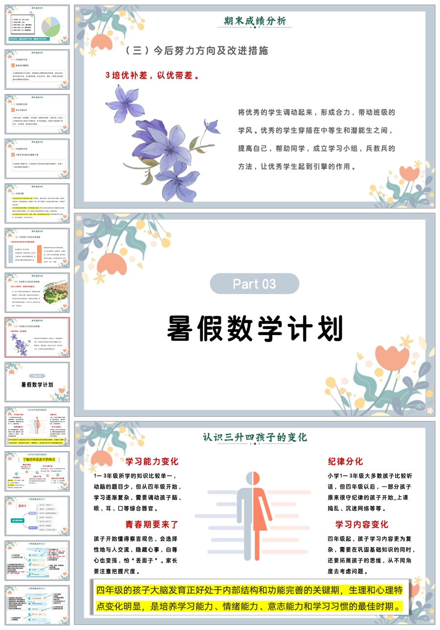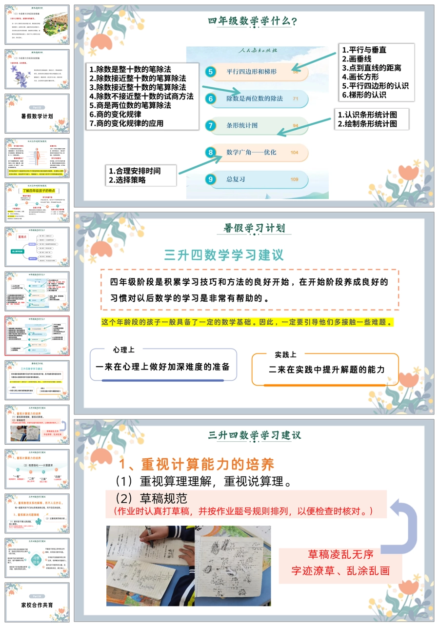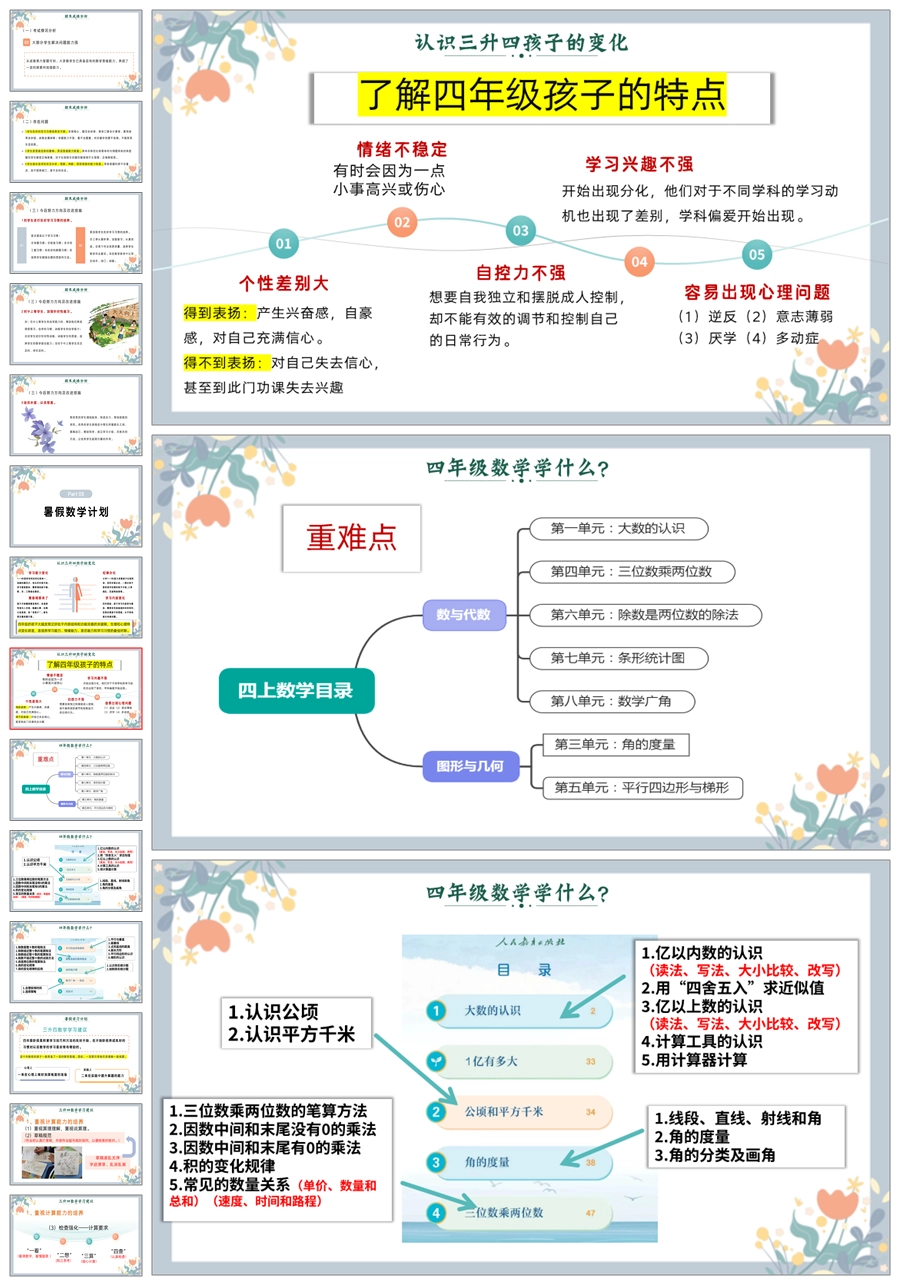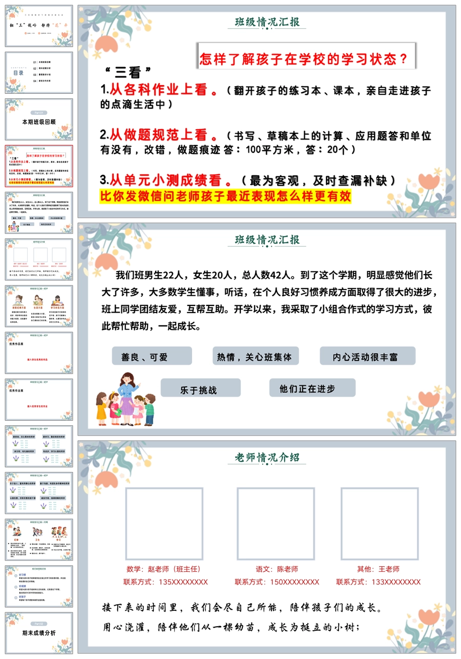【5321】【三下】【数学】【翻“三”越岭 静待“花”开】三年级下学期期末家长会PPT课件+发言稿