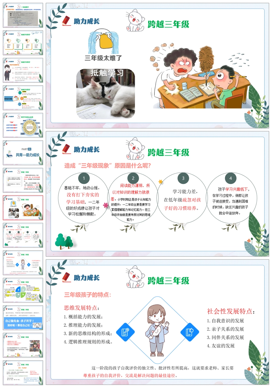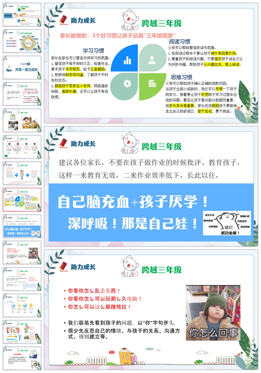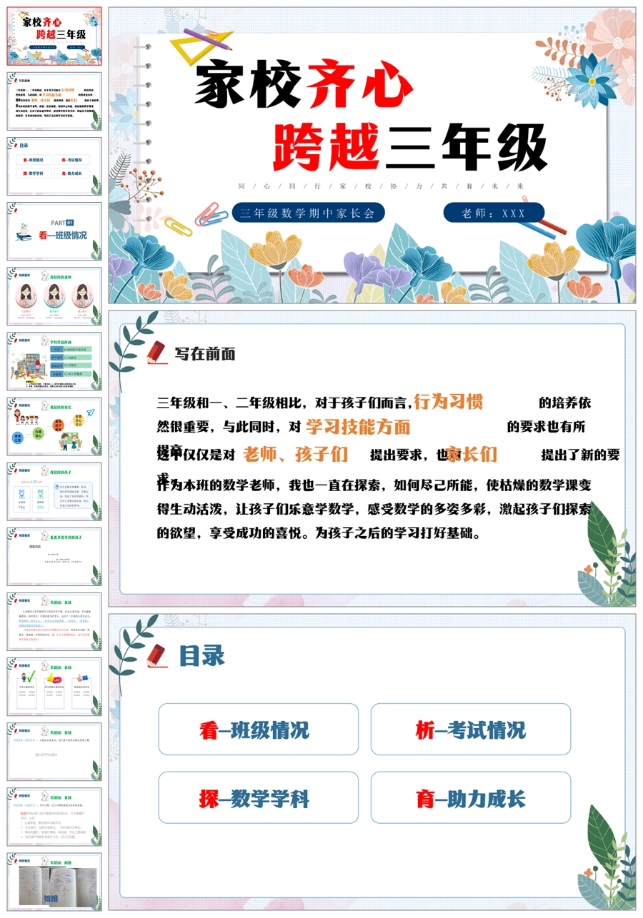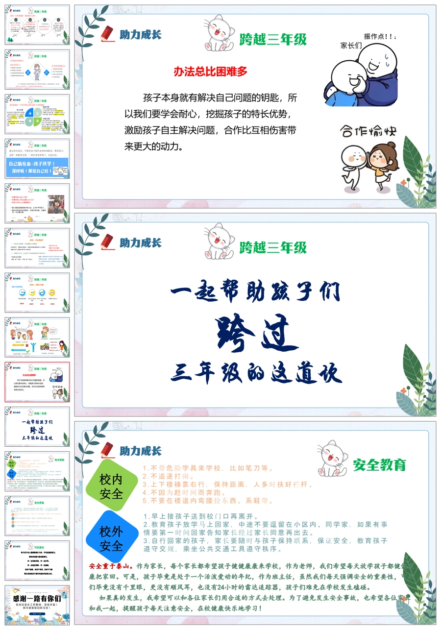 首页 三年级家长会 【5325】【三下】【数学】【家校齐心,跨越三年级】三年级下学期期中家长会PPT课件+发言稿