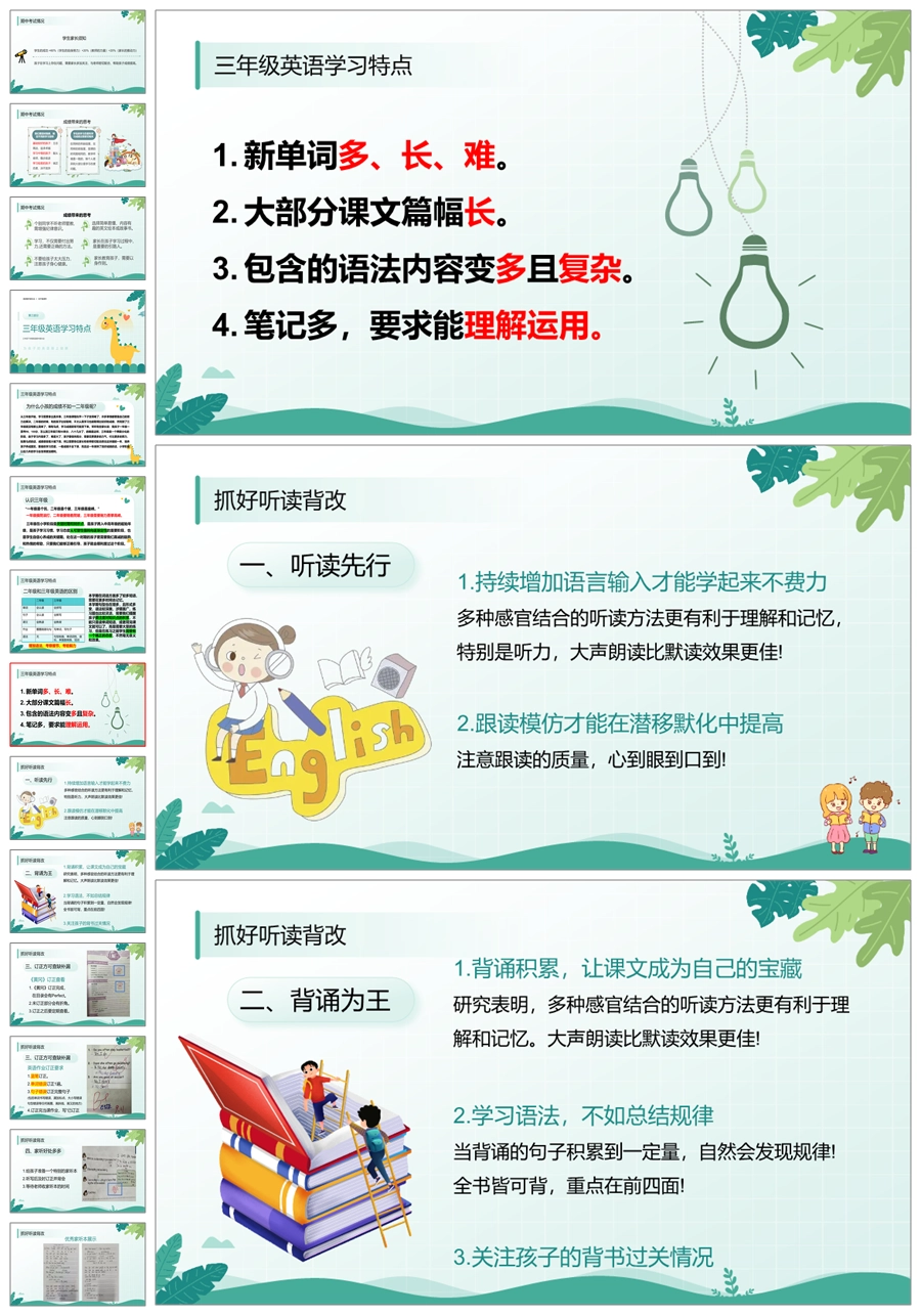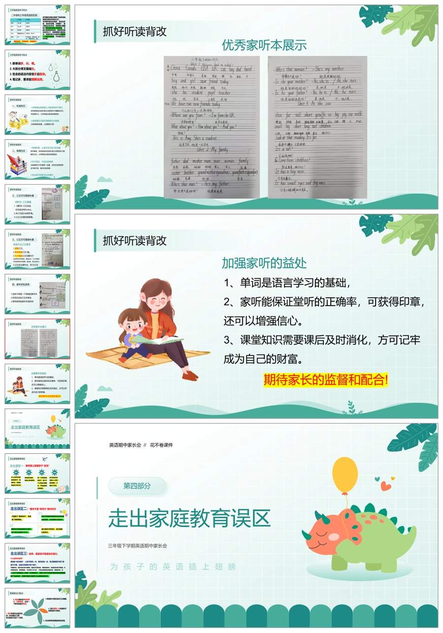 【5330】【三下】【英语】【因爱相聚 育见成长】三年级下学期期中家长会PPT课件+发言稿