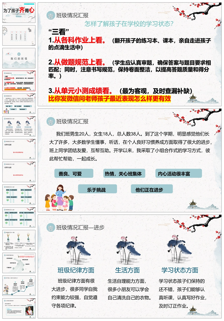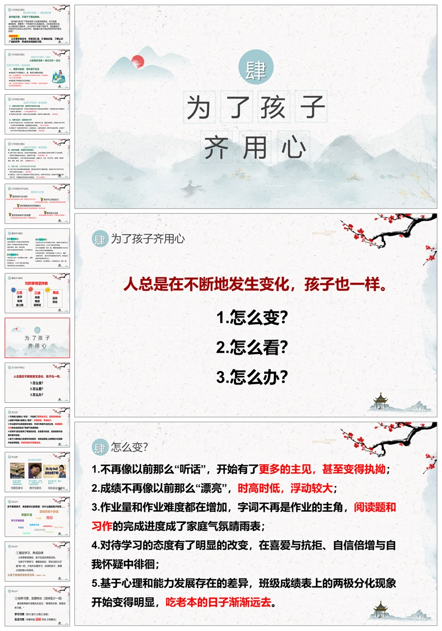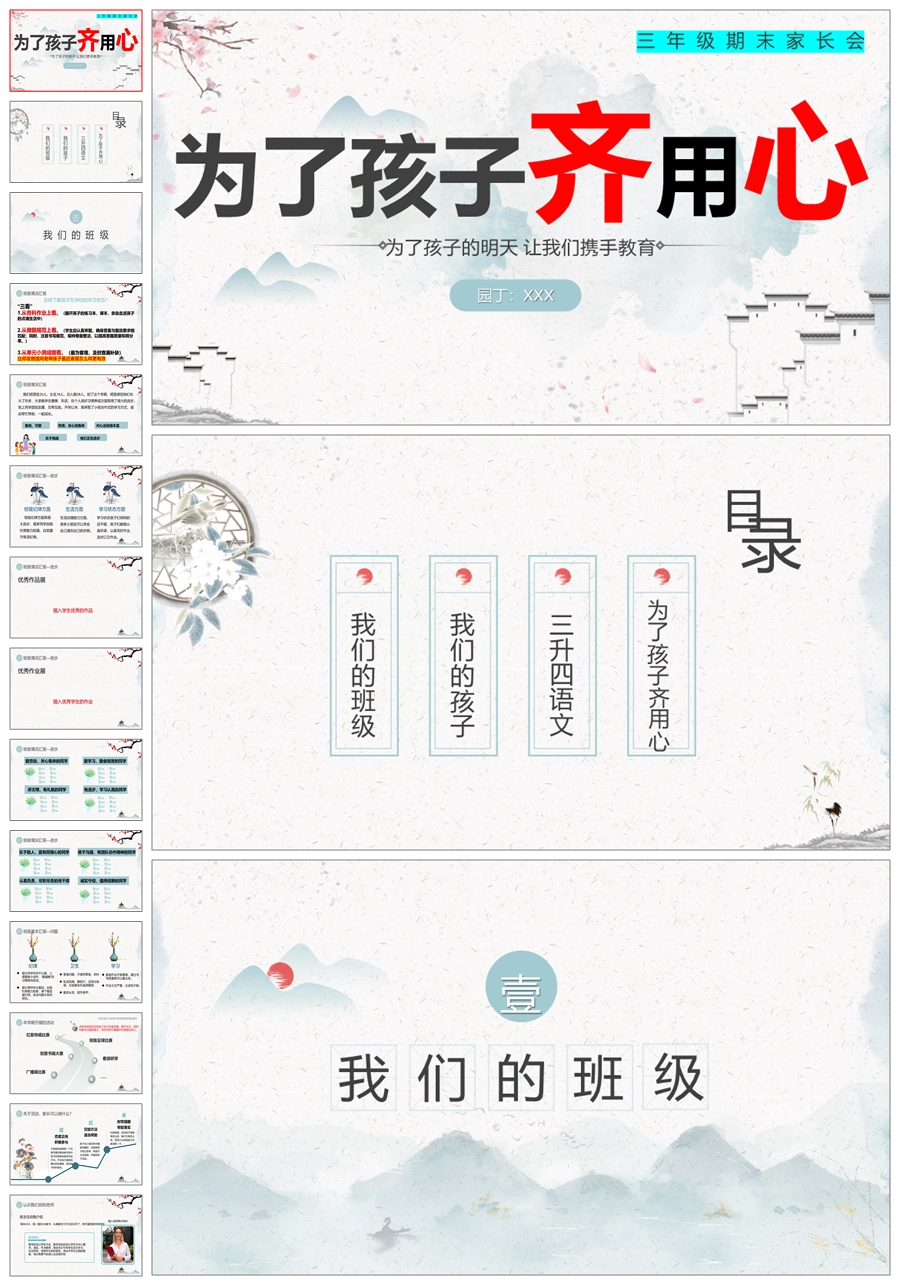 首页 三年级家长会 【5337】【三下】【语文】【为了孩子齐用心】三年级下学期期末家长会PPT课件+发言稿