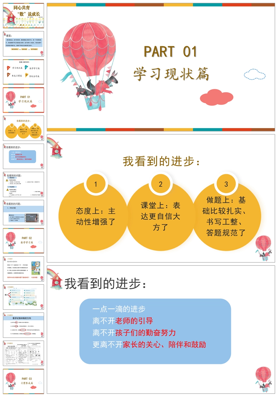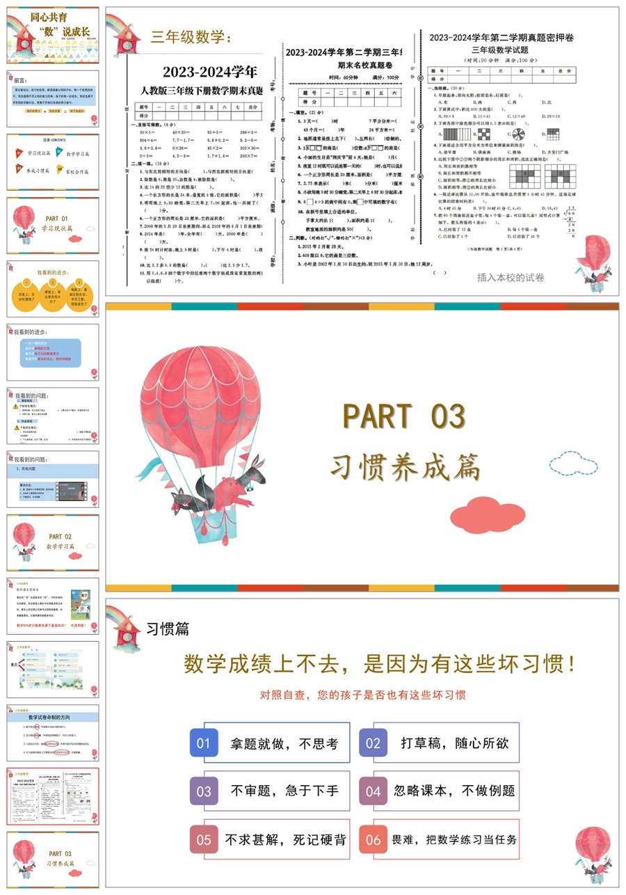【5340】【通用】 同心共育“数”说成长三年级数学家长会PPT课件+发言稿