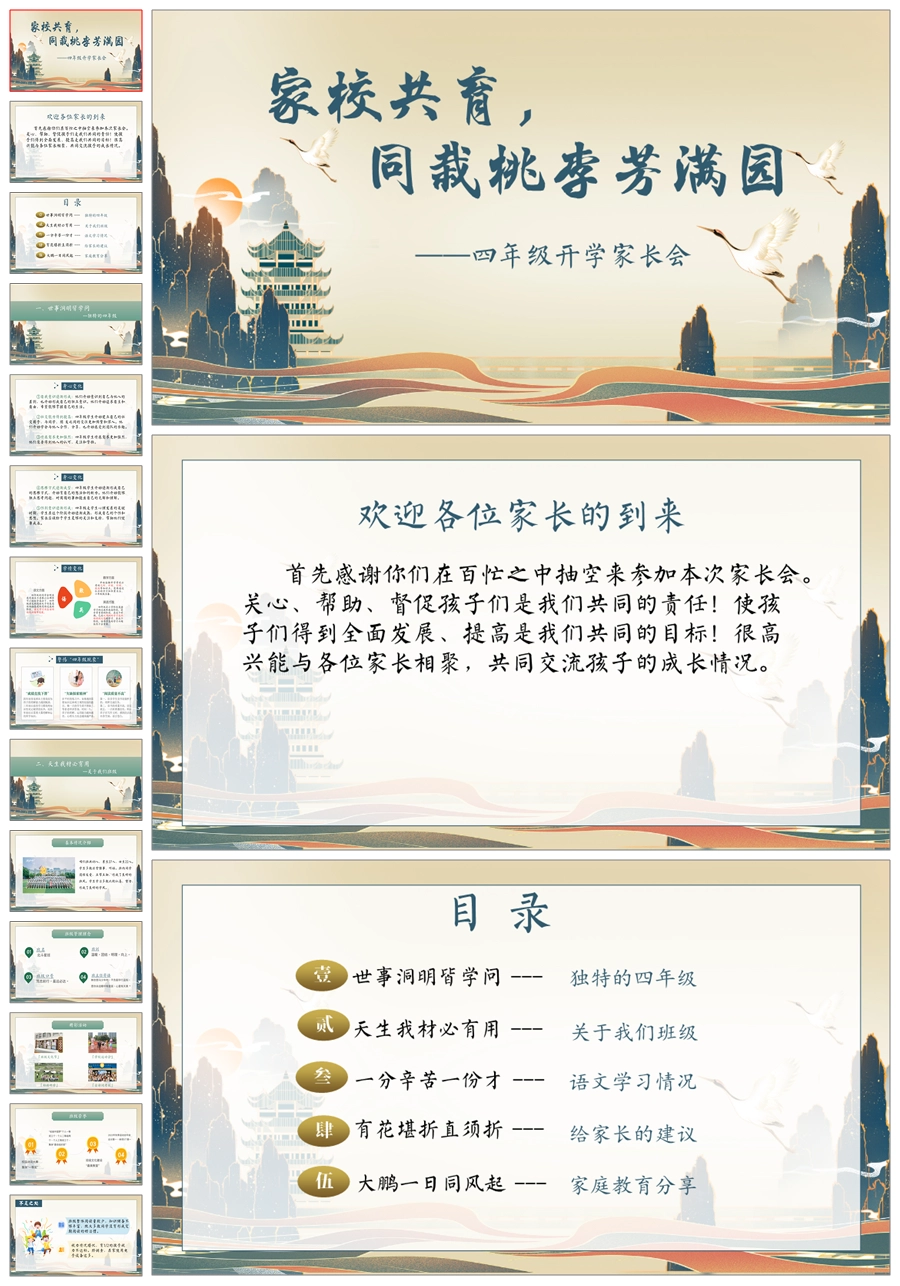 【5342】【四年级】【家校共育,同栽桃李芳满园】四年级家长会PPT课件+发言稿