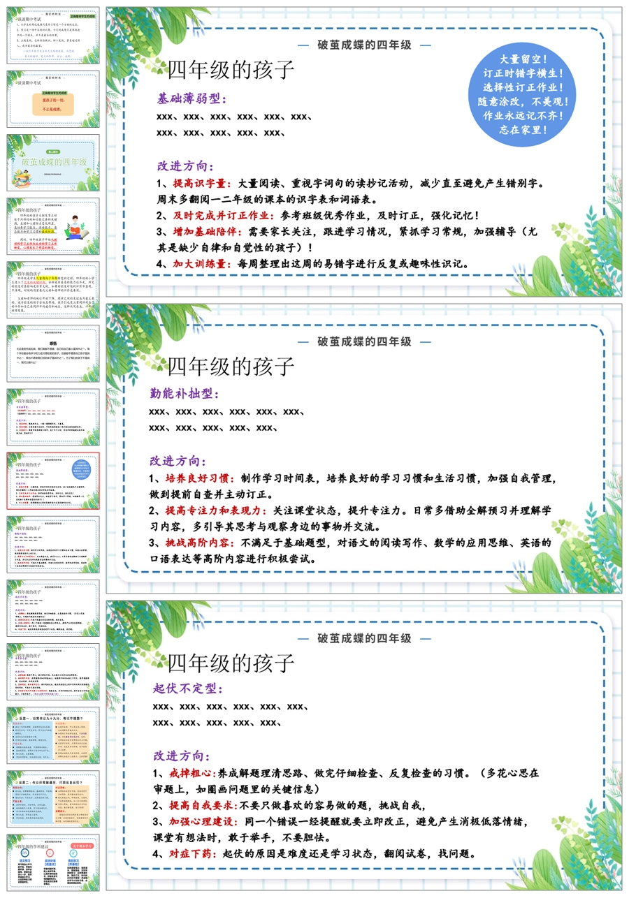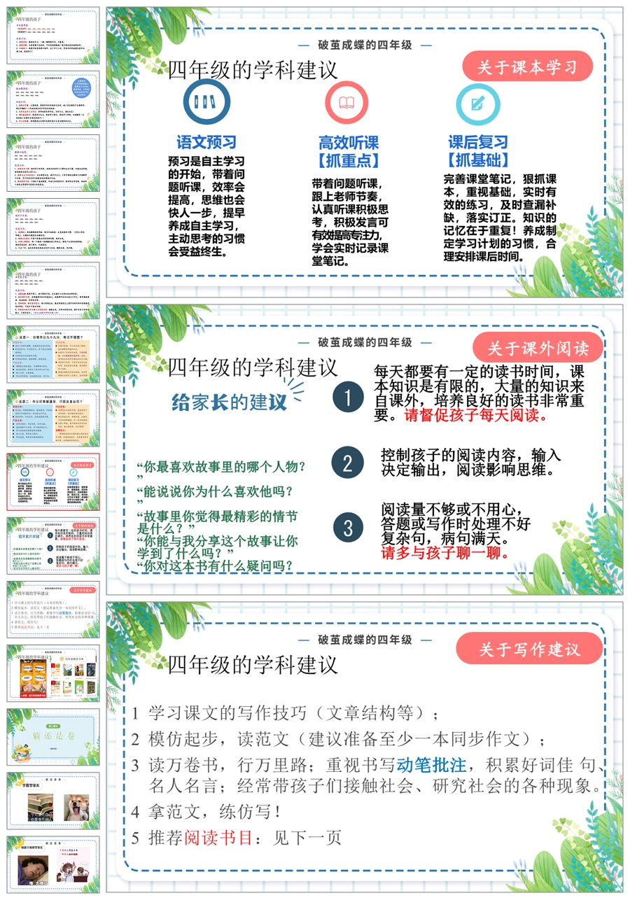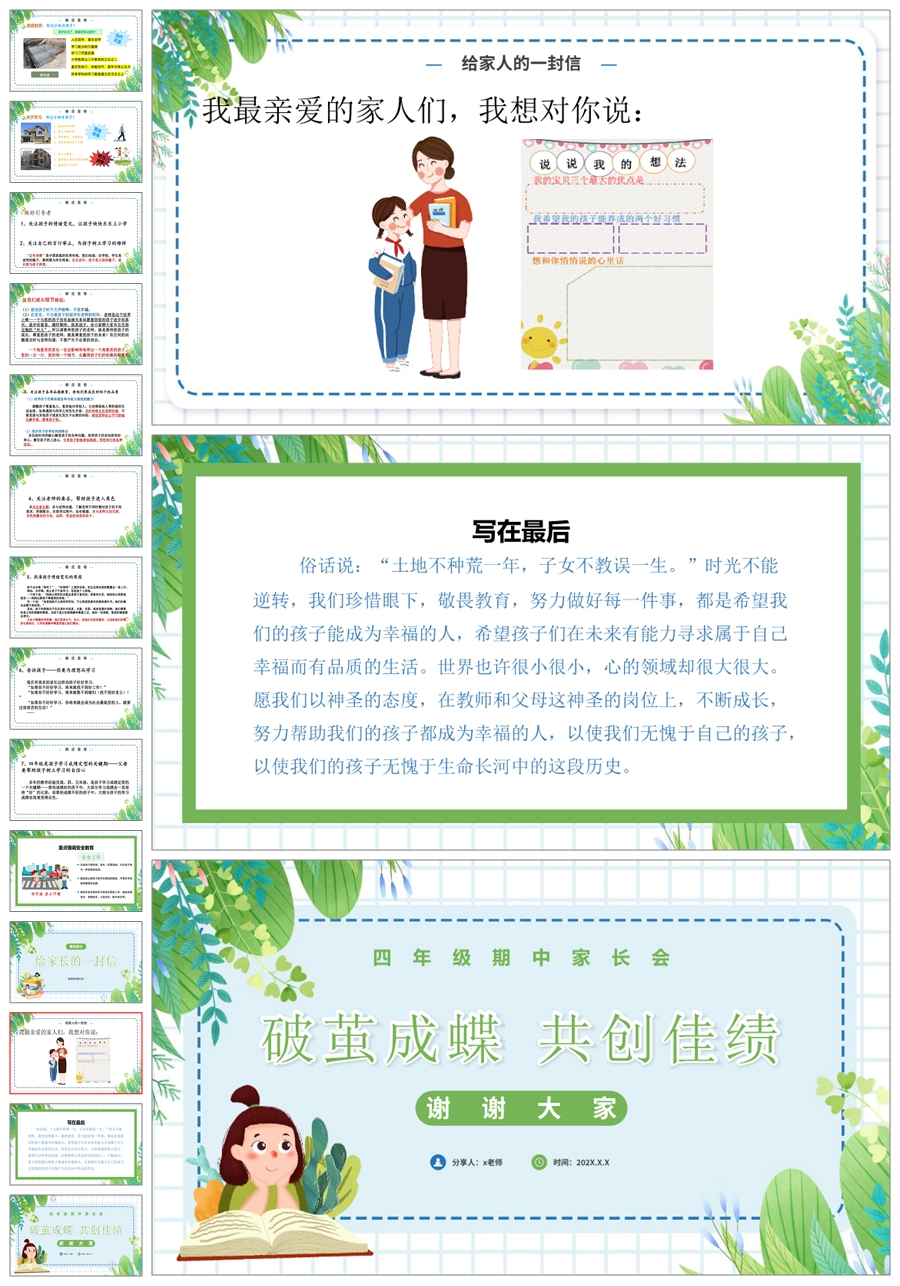 首页 四年级家长会 【5347】【四上】【破茧成蝶 共创佳绩】四年级上学期期中家长会PPT课件+发言稿