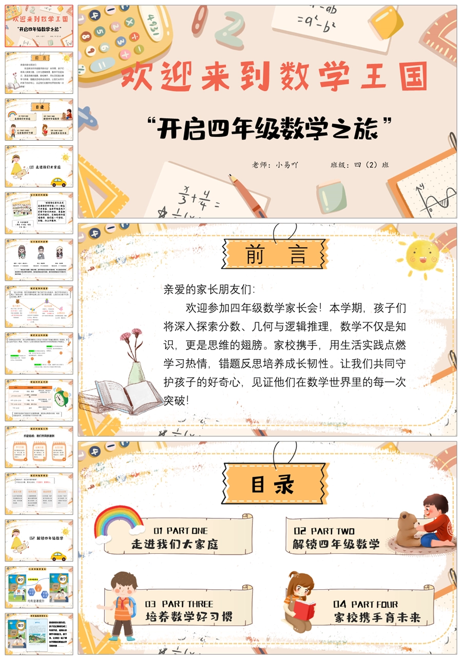 【5348】【四上】【数学】【欢迎来到数学王国】四年级上学期开学家长会PPT课件+发言稿