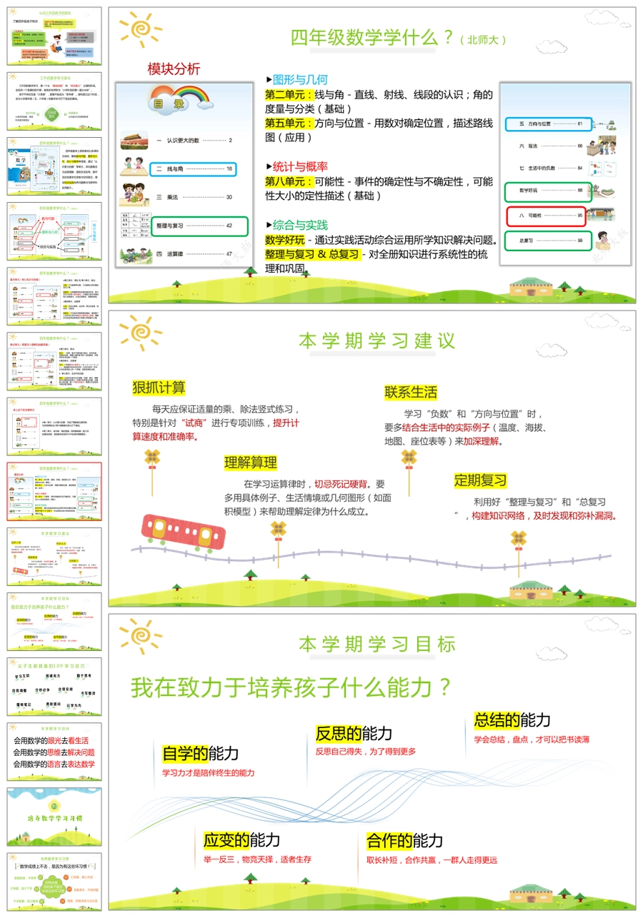 【5349】【四上】【数学】【聚”四“赋能 “数”说成长】四年级上学期开学家长会 - 北师大版PPT课件+发言稿