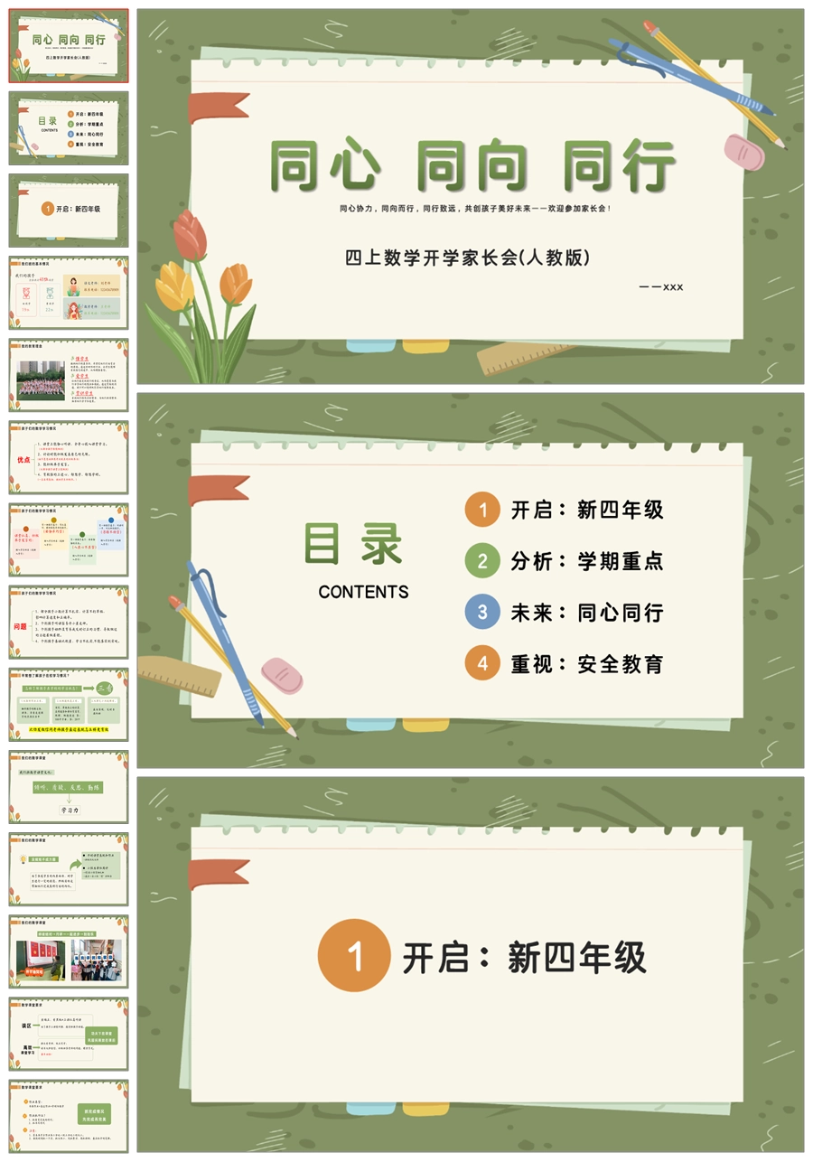 首页 四年级家长会 【5350】【四上】【数学】【同心 同向 同行】四年级上学期开学家长会-人教版PPT课件+发言稿