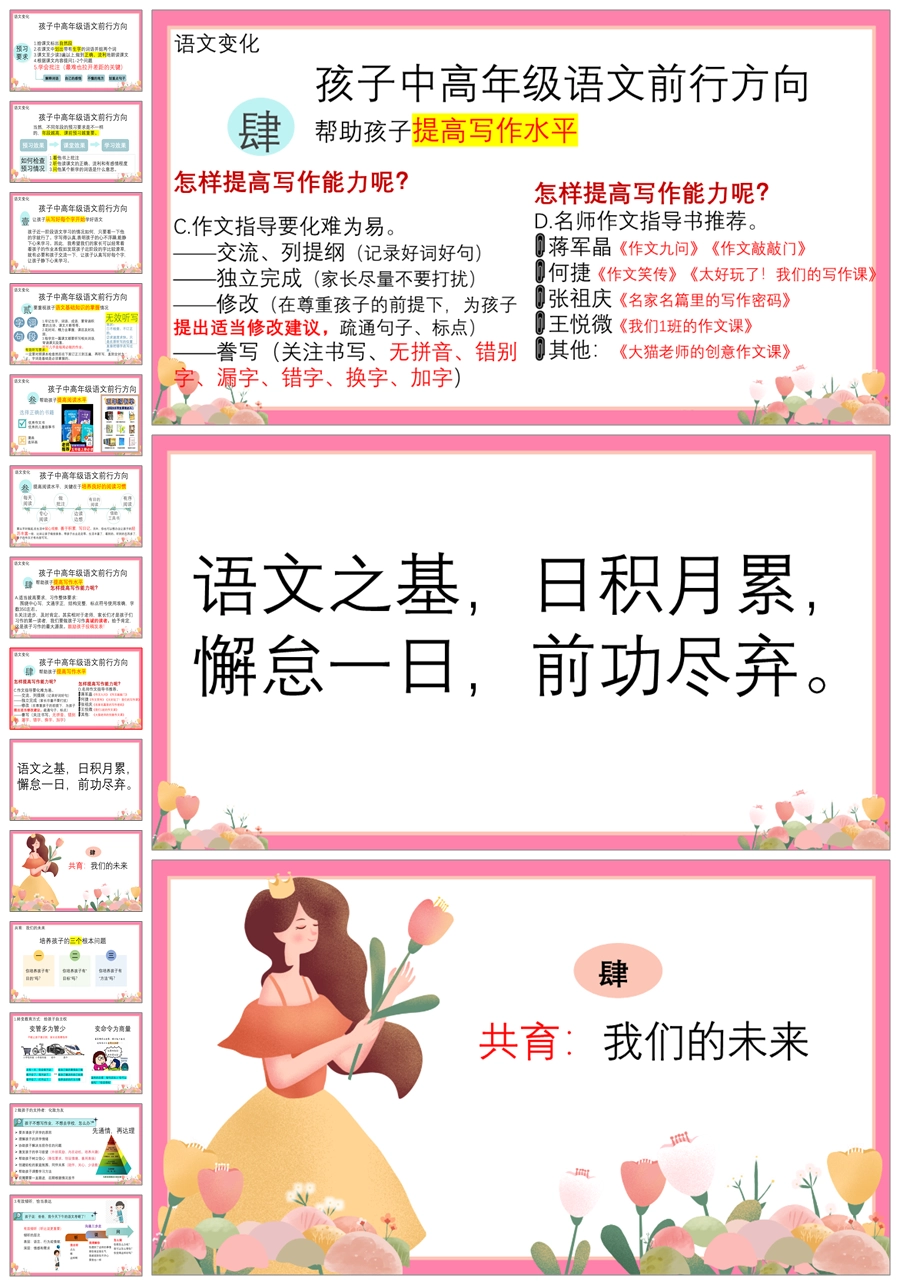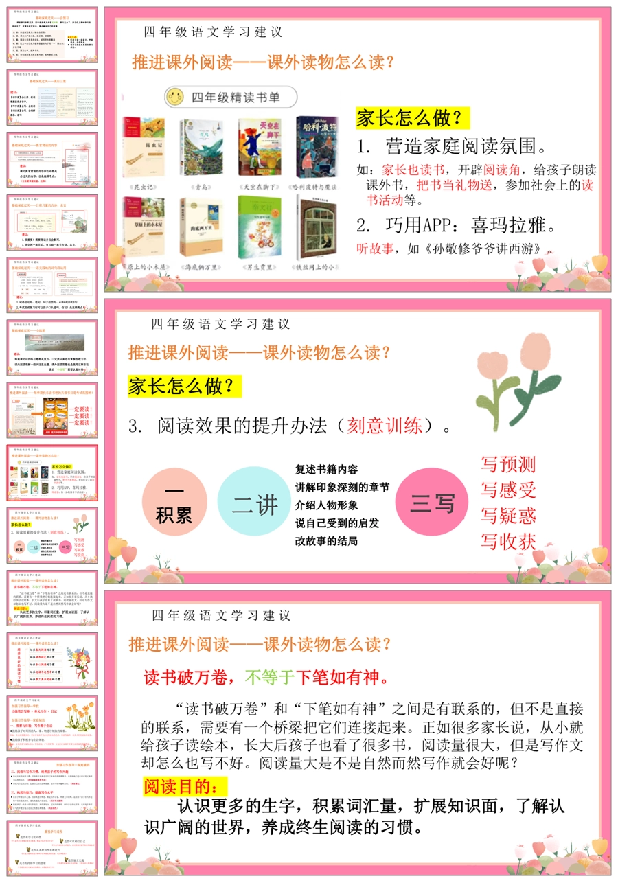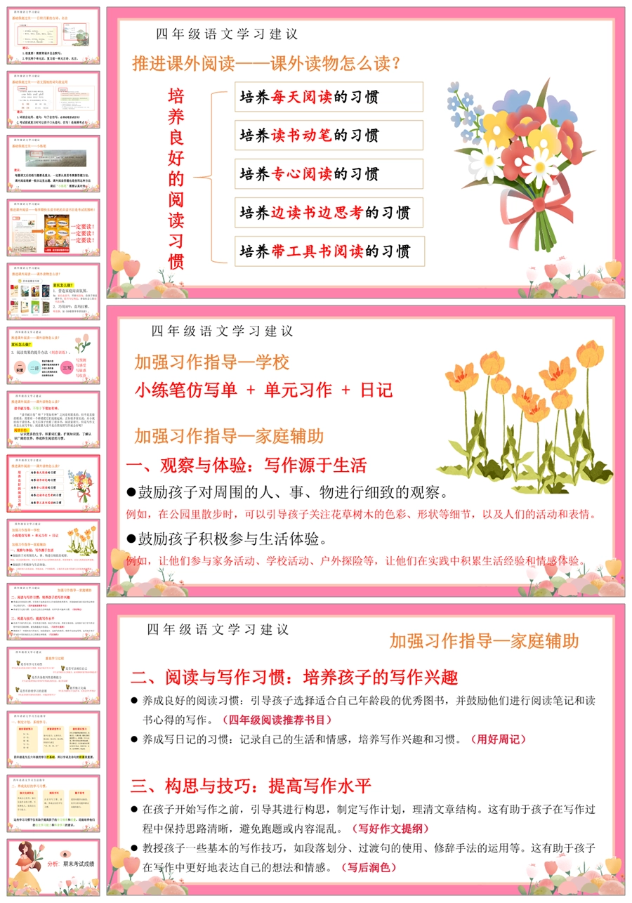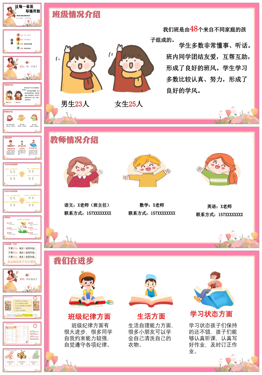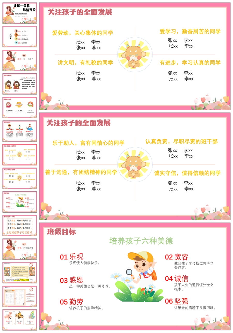 首页 四年级家长会 【5358】【四上】【语文】【让每一朵花尽情开放】四年级上学期期末家长会PPT课件+发言稿