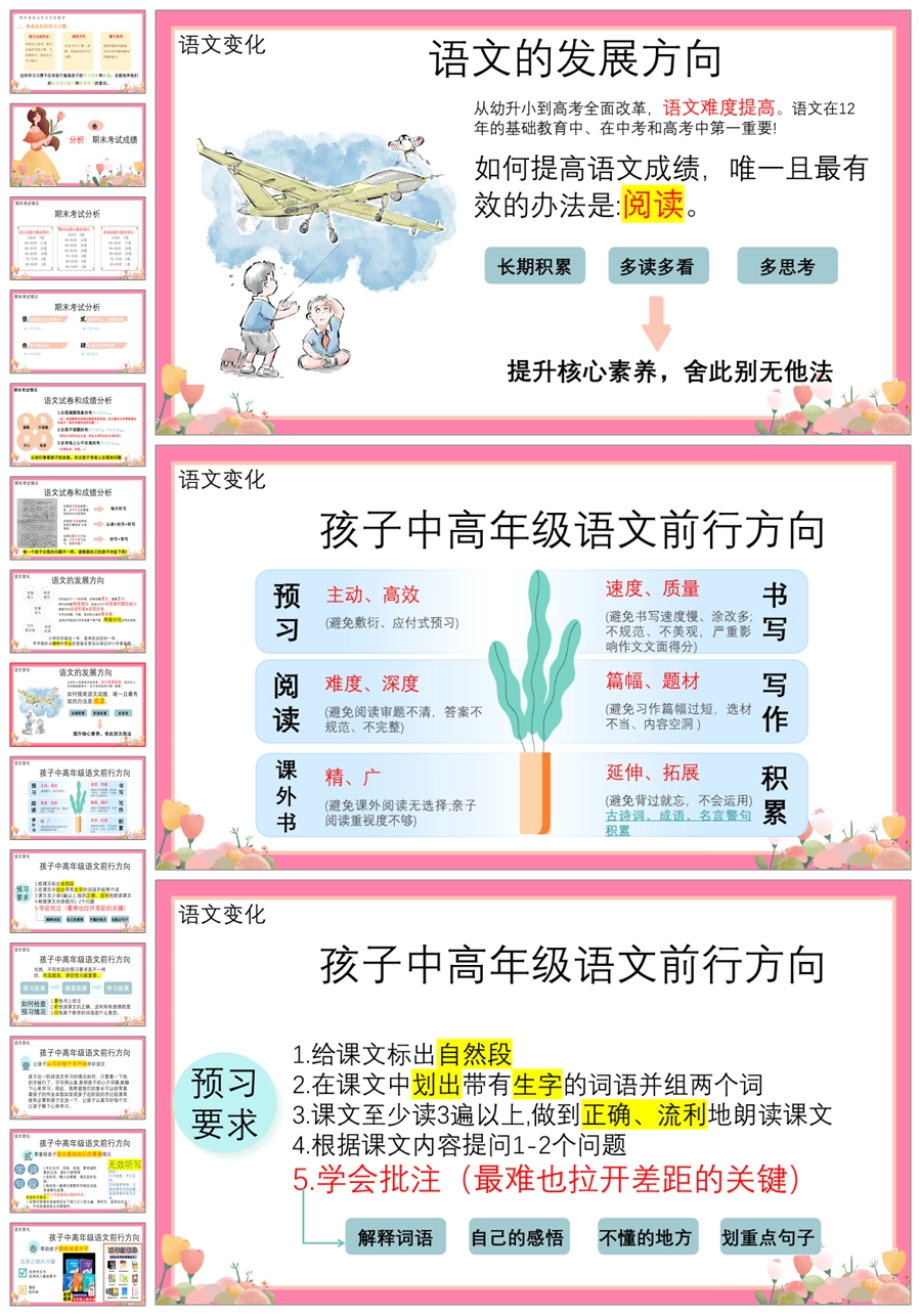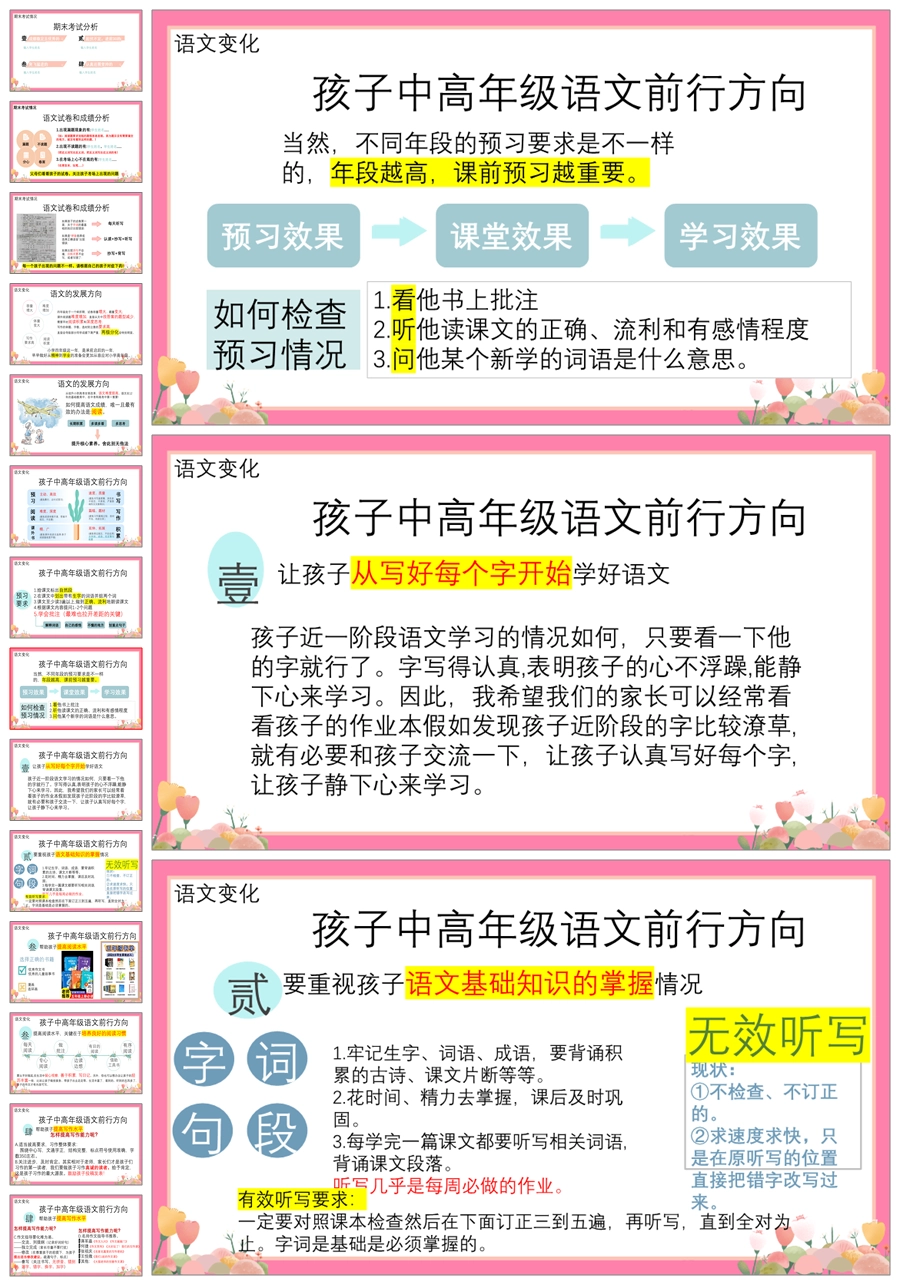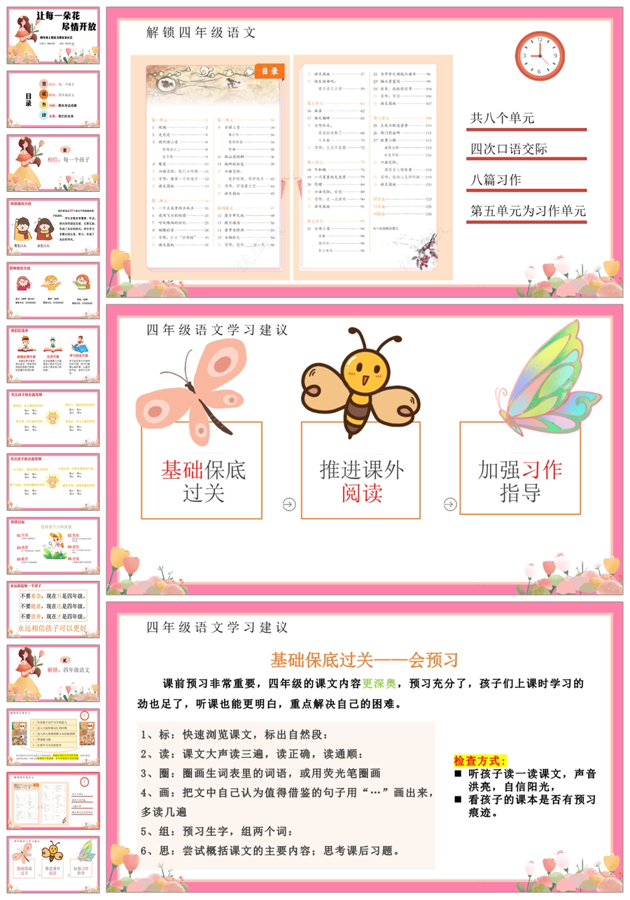 【5358】【四上】【语文】【让每一朵花尽情开放】四年级上学期期末家长会PPT课件+发言稿