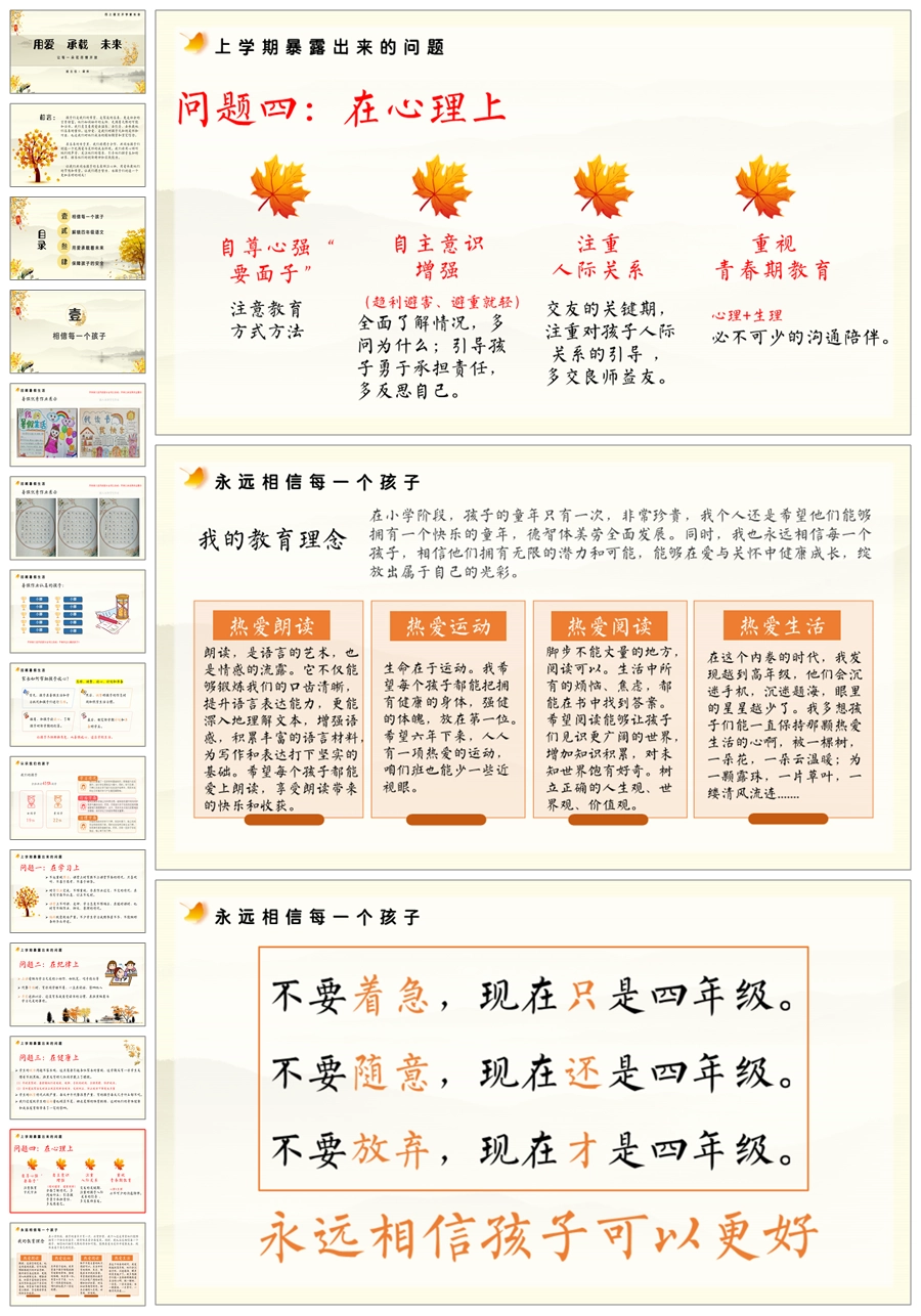 首页 四年级家长会 【5359】【四上】【语文】【用爱 承载 未来】四年级上学期开学家长会PPT课件+发言稿