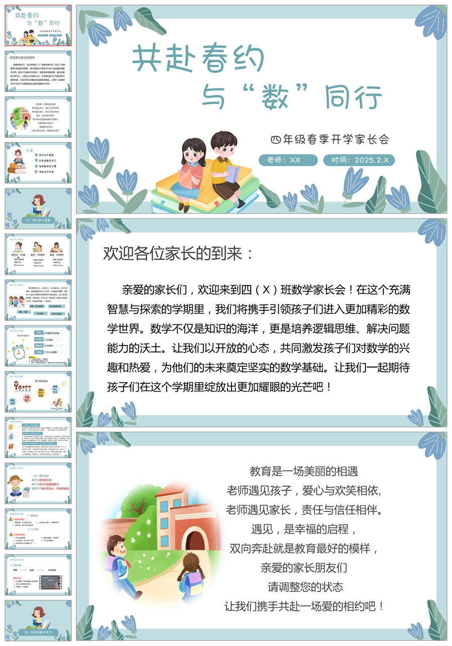 【5362】【四下】【数学】【共赴春约 与数同行】四年级下学期开学家长会PPT课件+发言稿
