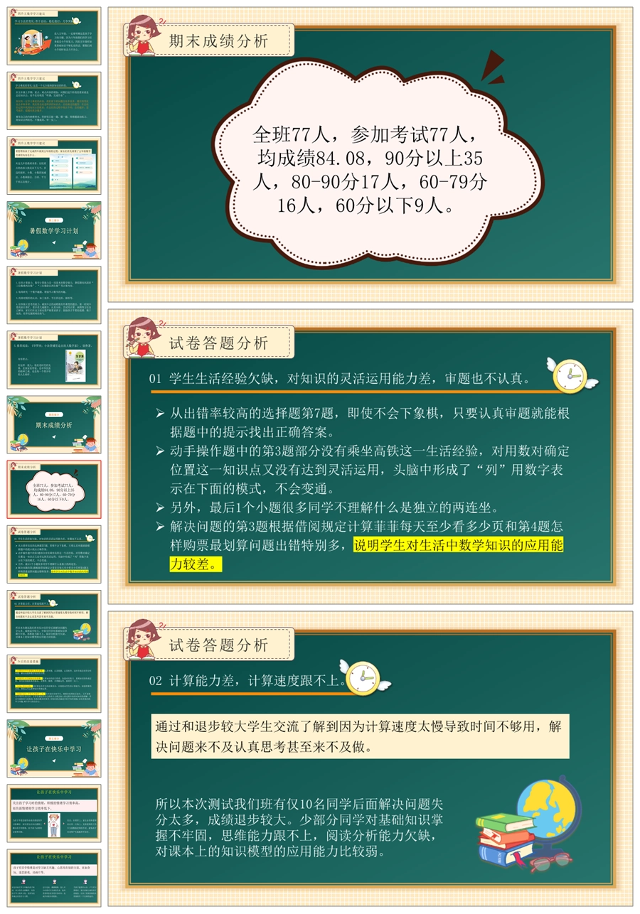 【5364】【四下】【数学】【浅夏时光,悦见成长】四年级下学期期末家长会PPT课件+发言稿