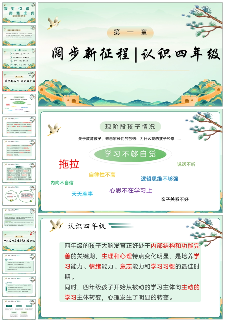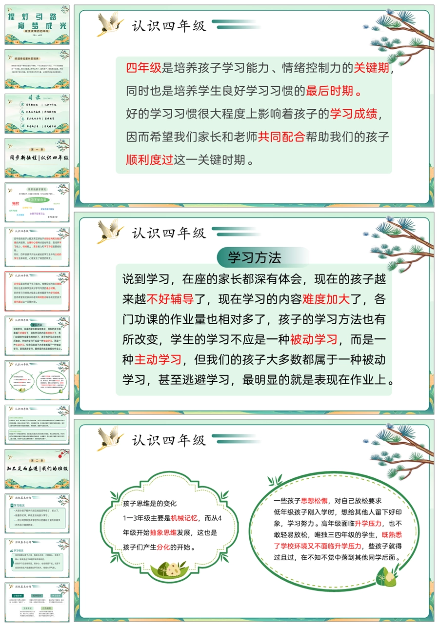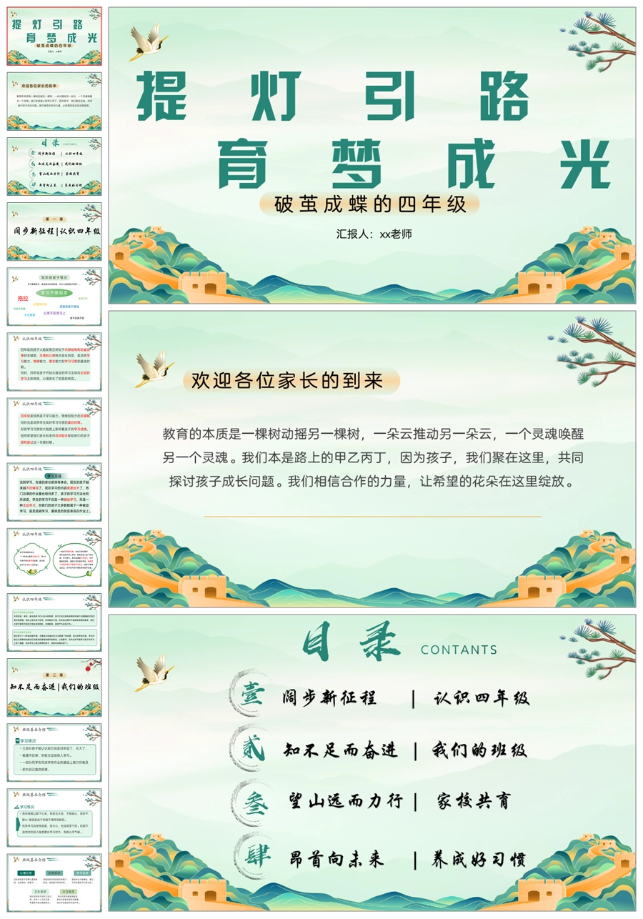 【5366】【四下】【提灯引路 育梦成光】四年级下学期期中家长会PPT课件+发言稿
