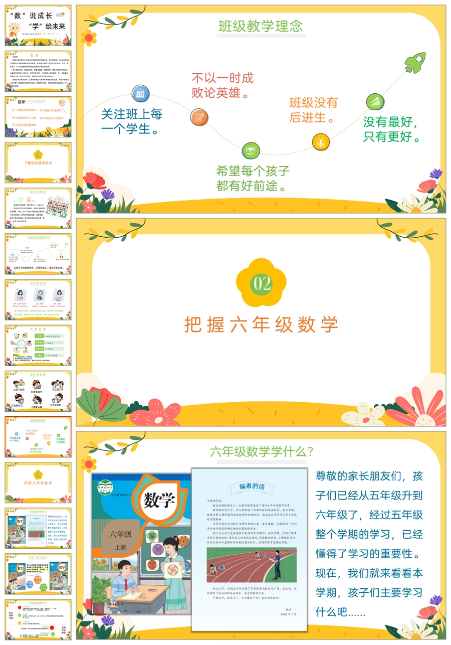 【5407】【六上】【数学】【“数”说成长,“学”绘未来】六年级上学期开学家长会PPT课件+发言稿