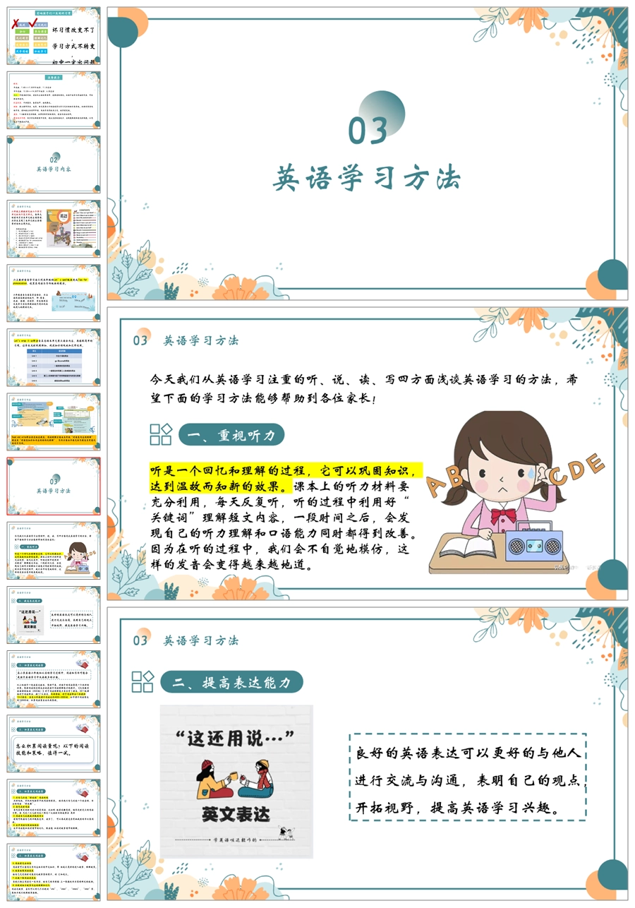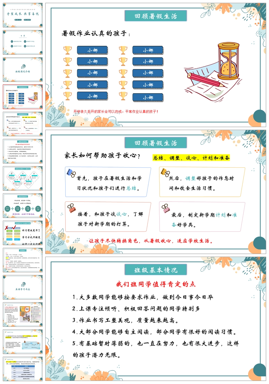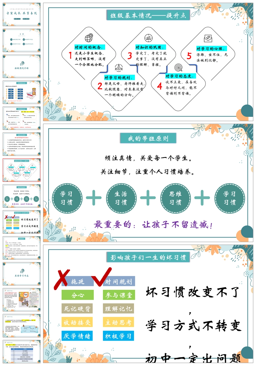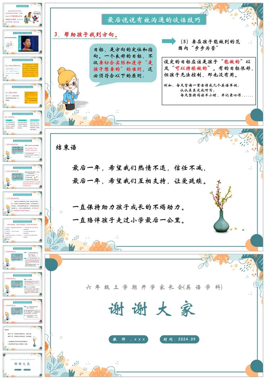 【5410】【六上】【英语】【守望成长 共享喜悦】六年级上学期家长会PPT课件+发言稿