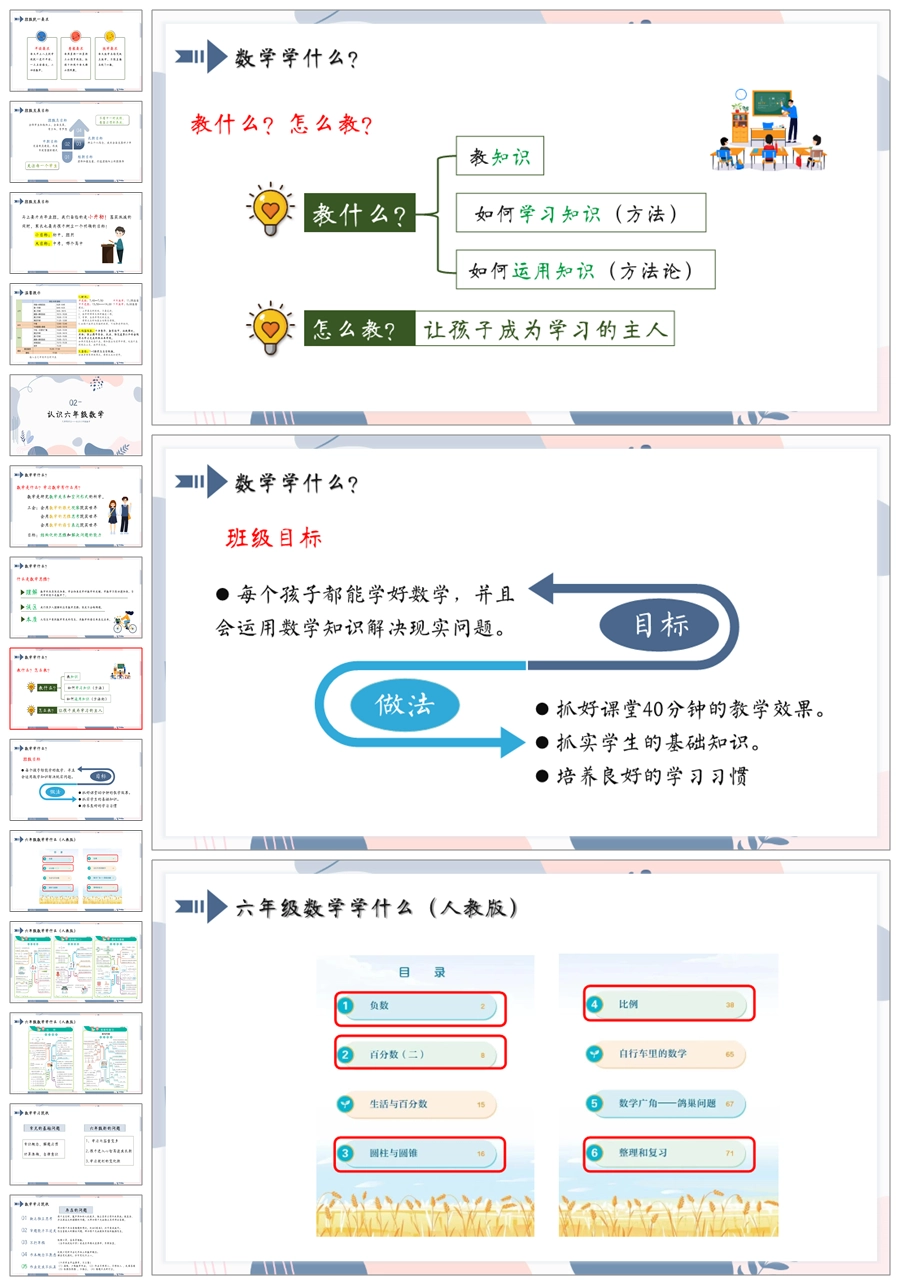 【5414】【六下】【人教版版数学】【心中有“数”,逐梦前行】六年级下学期家长会PPT课件+发言稿