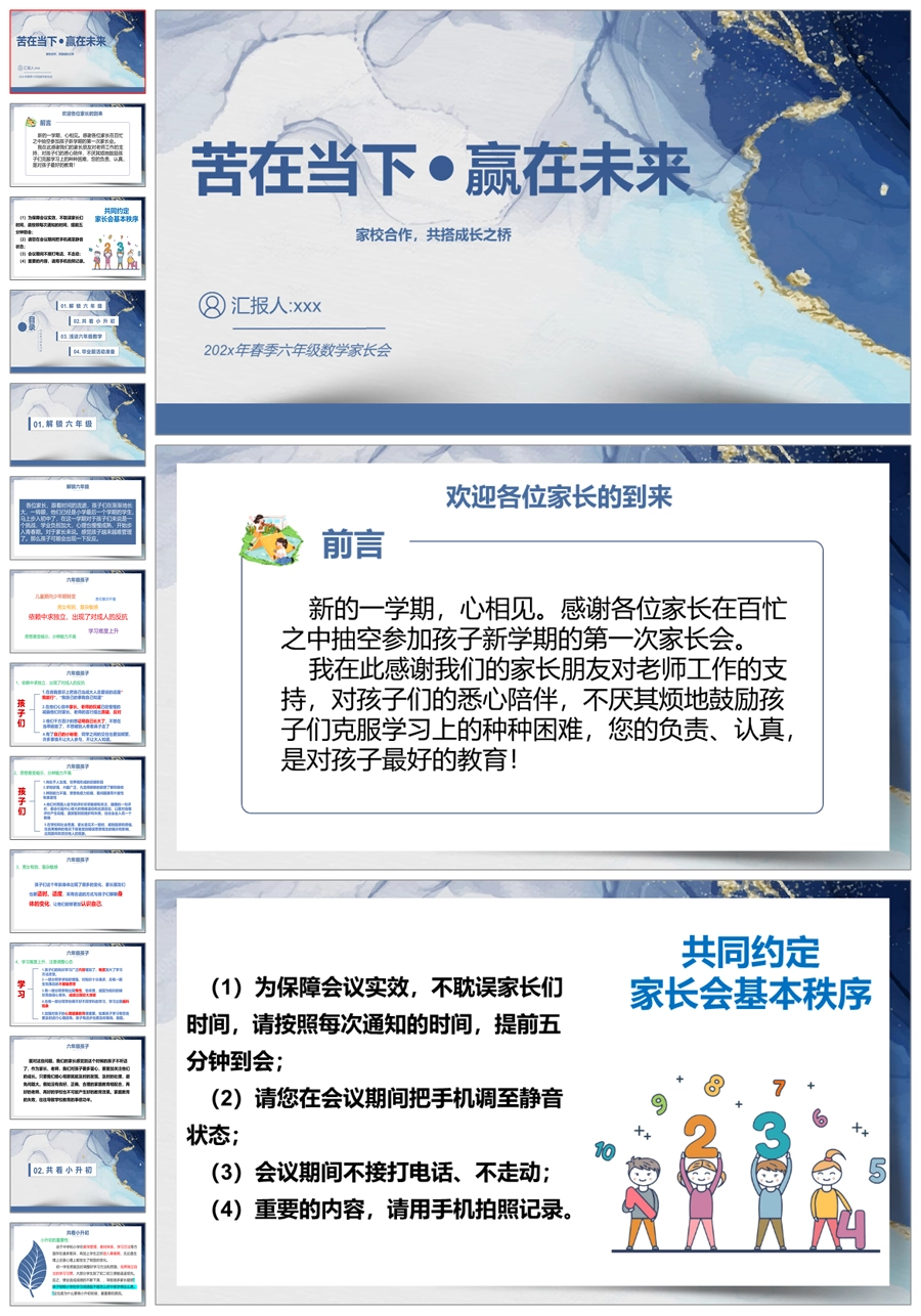 【5416】【六下】【数学】【苦在当下 赢在未来】六年级下学期开学家长会PPT课件+发言稿