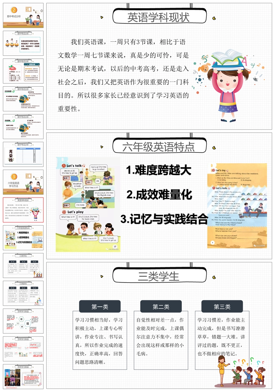 【5418】【六下】【英语】【扬帆启航 自信迎接小升初】六年级下学期期中家长会PPT课件+发言稿