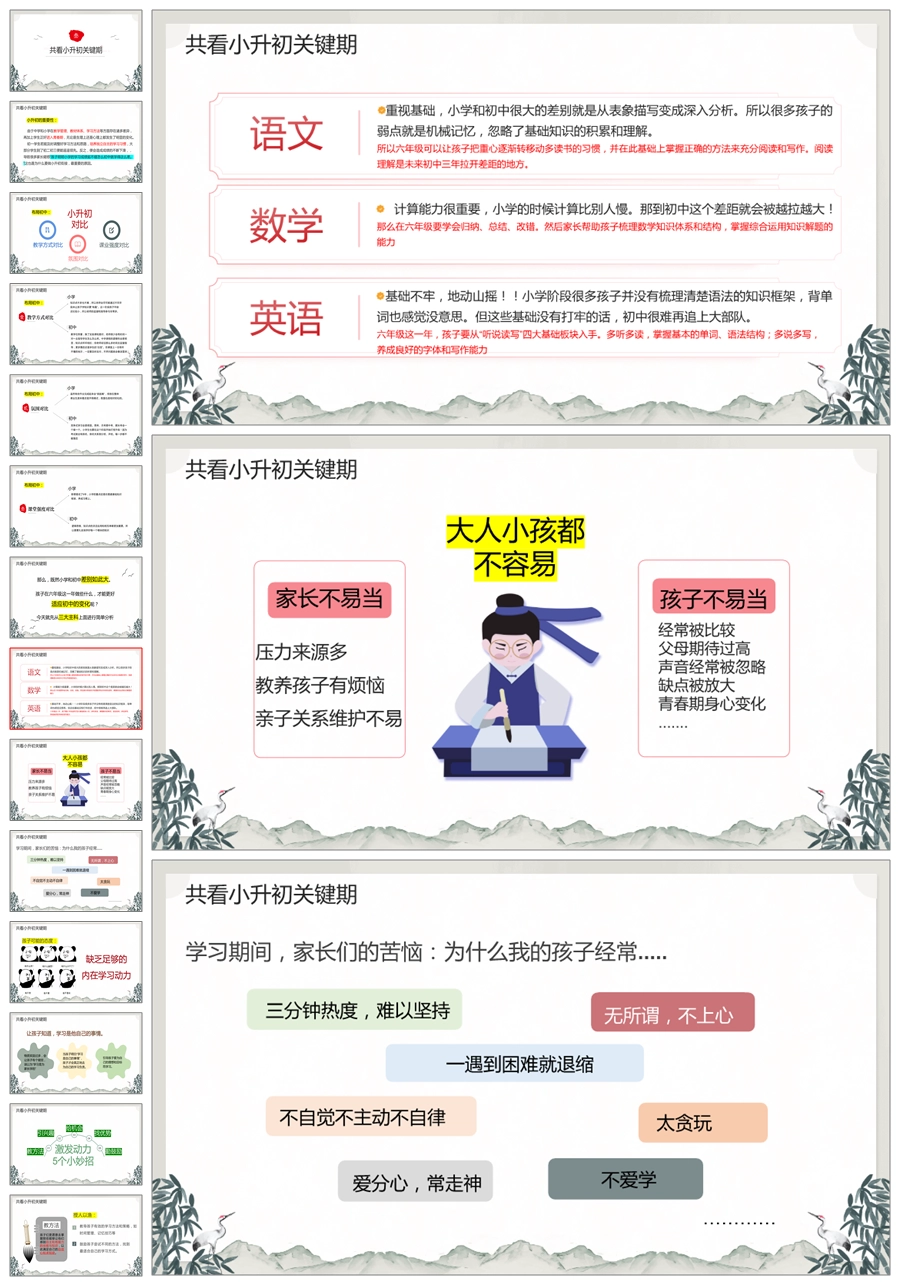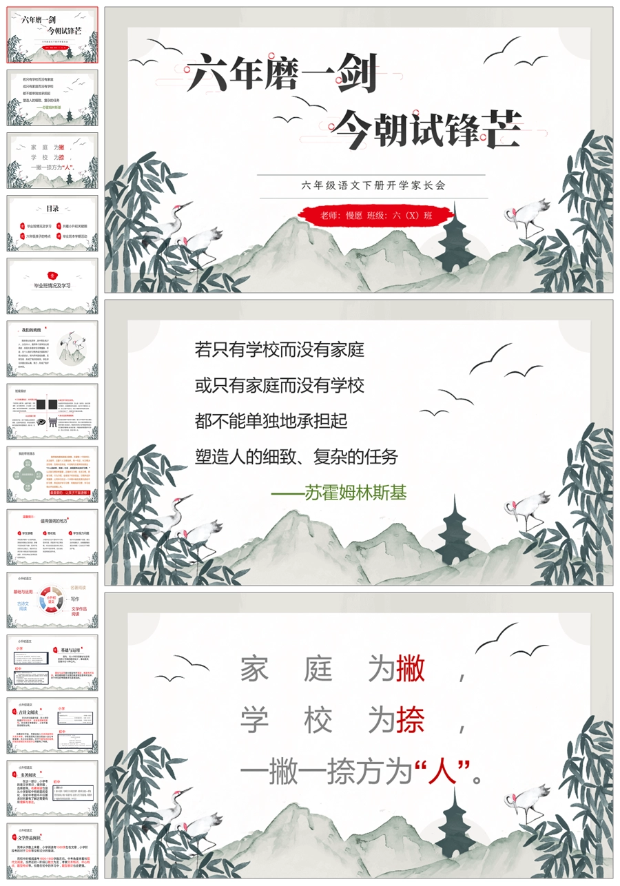 首页 六年级家长会 【5421】【六下】【语文】【六年磨一剑,今朝试锋芒】六年级下学期开学家长会PPT课件+发言稿