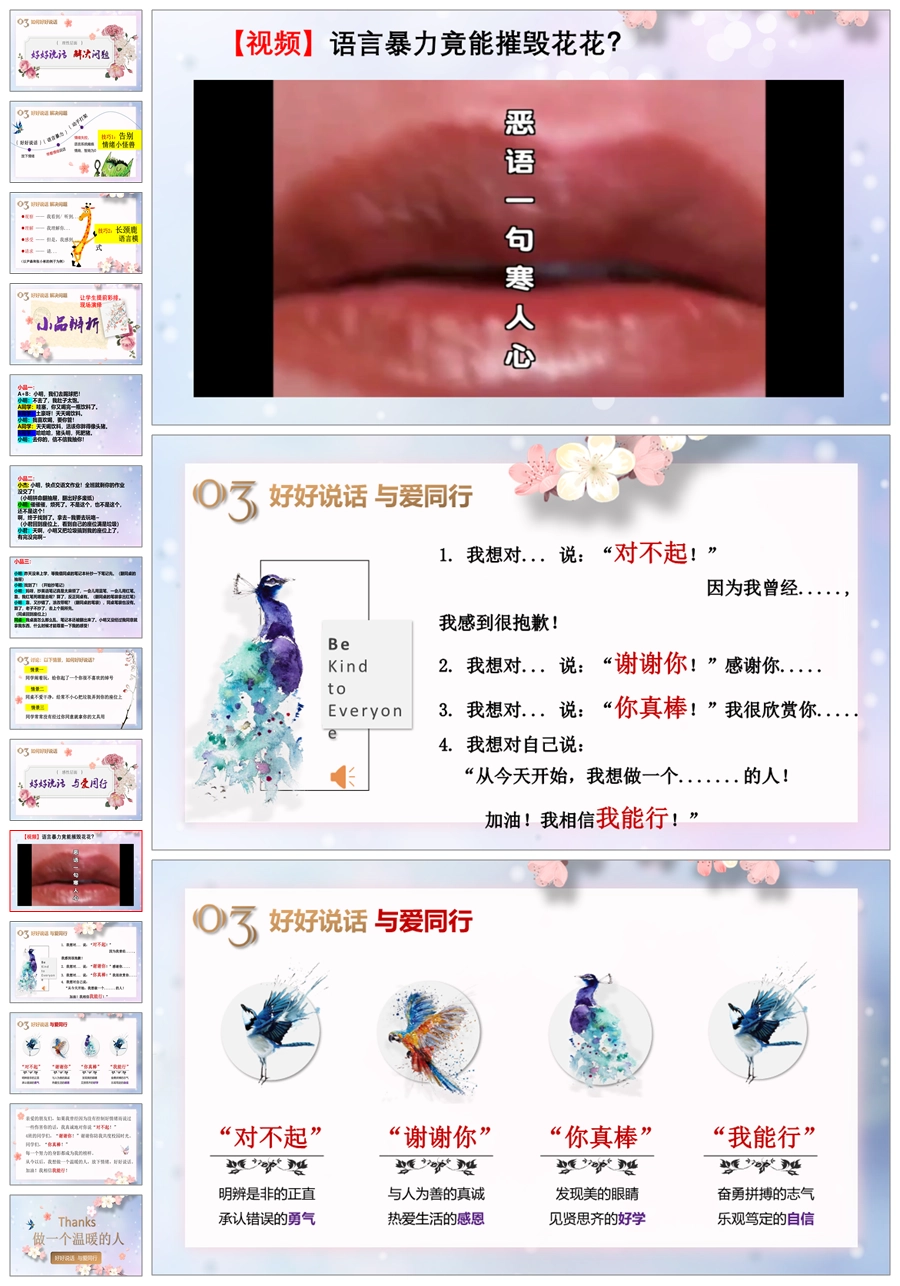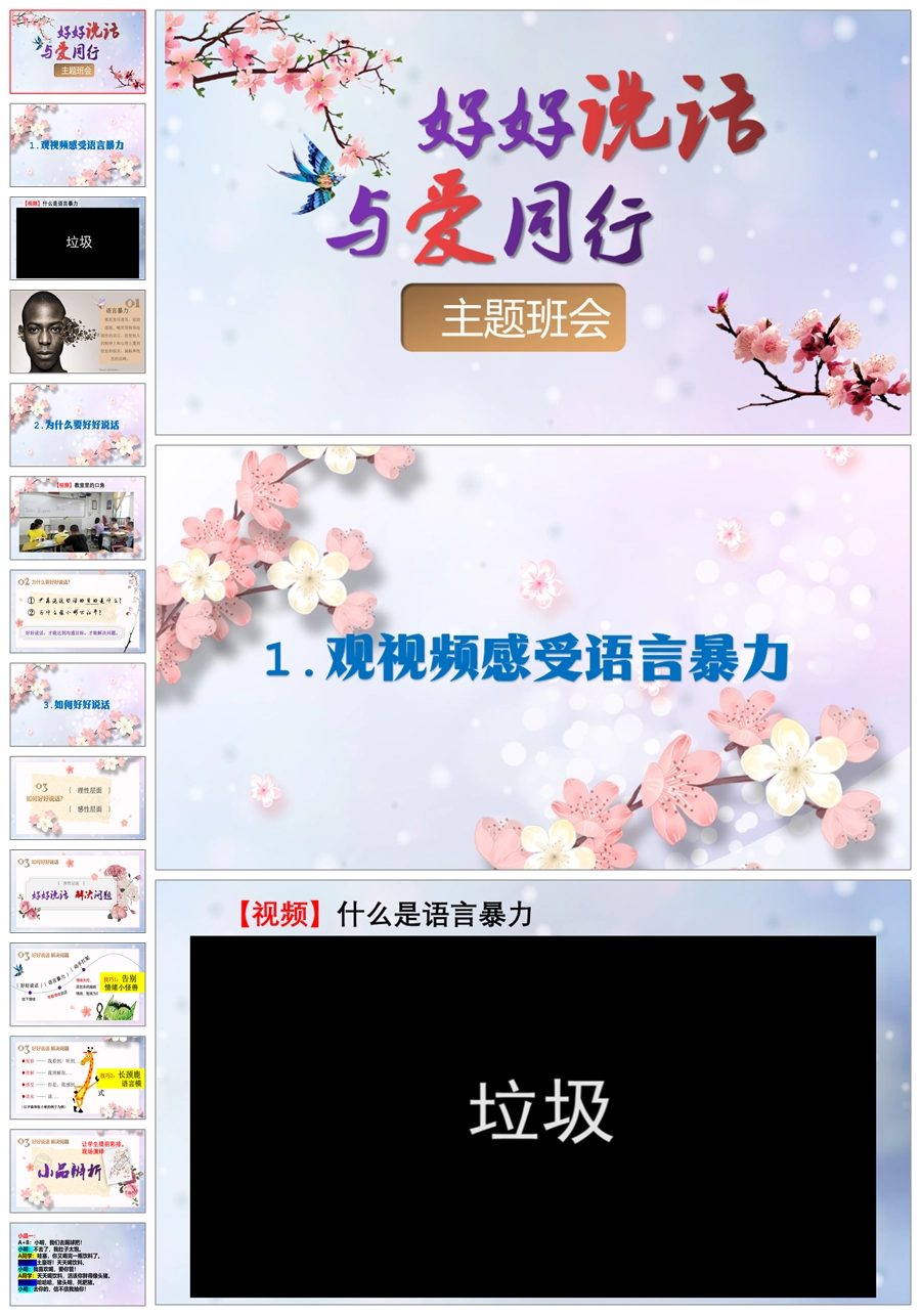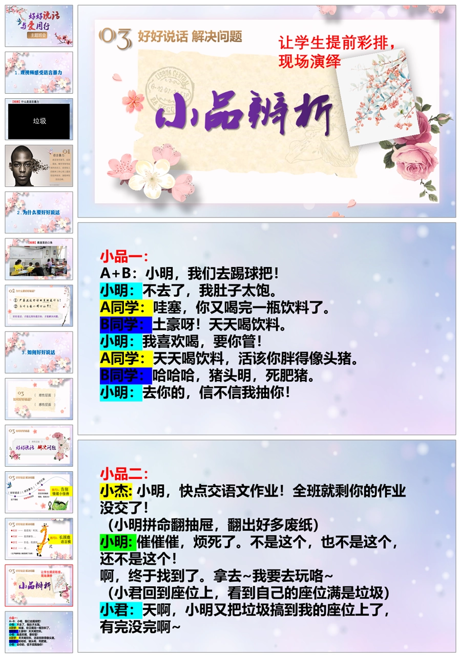【5434】《好好说话 与爱同行》拒绝语言暴力主题班会ppt课件+教案+视频+小品剧本