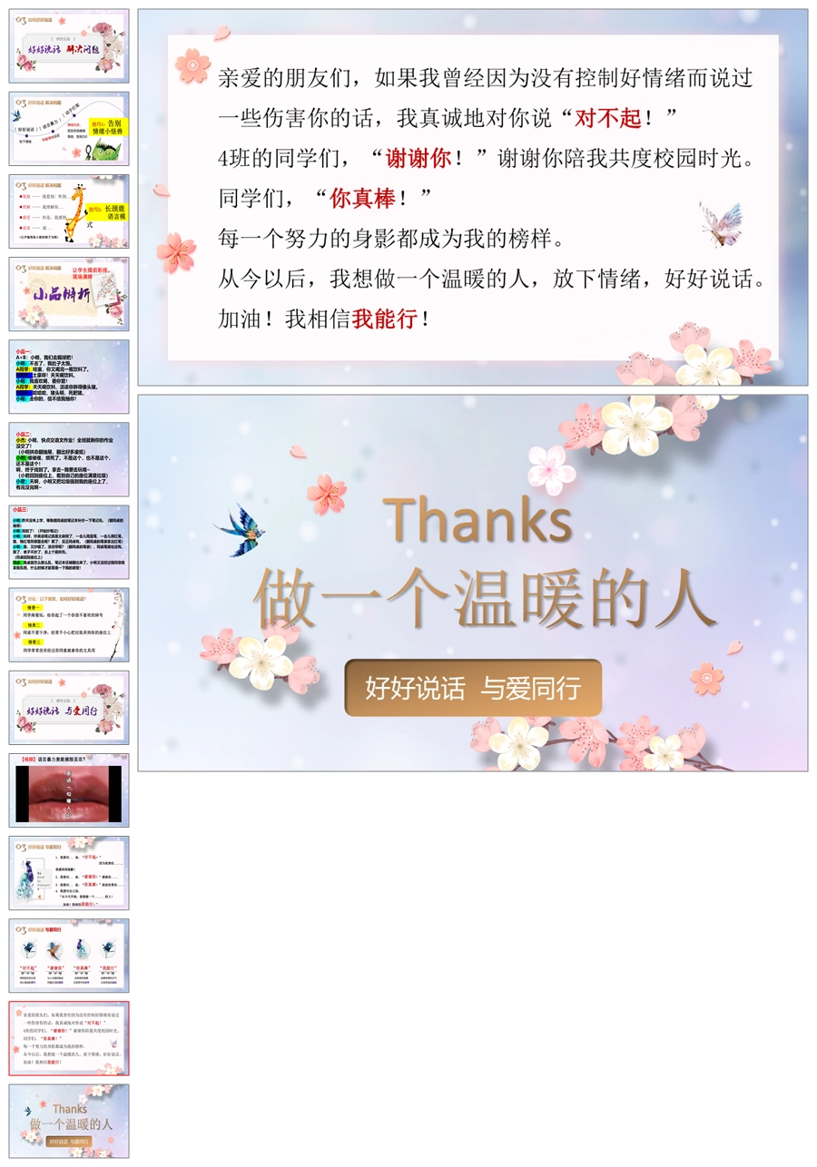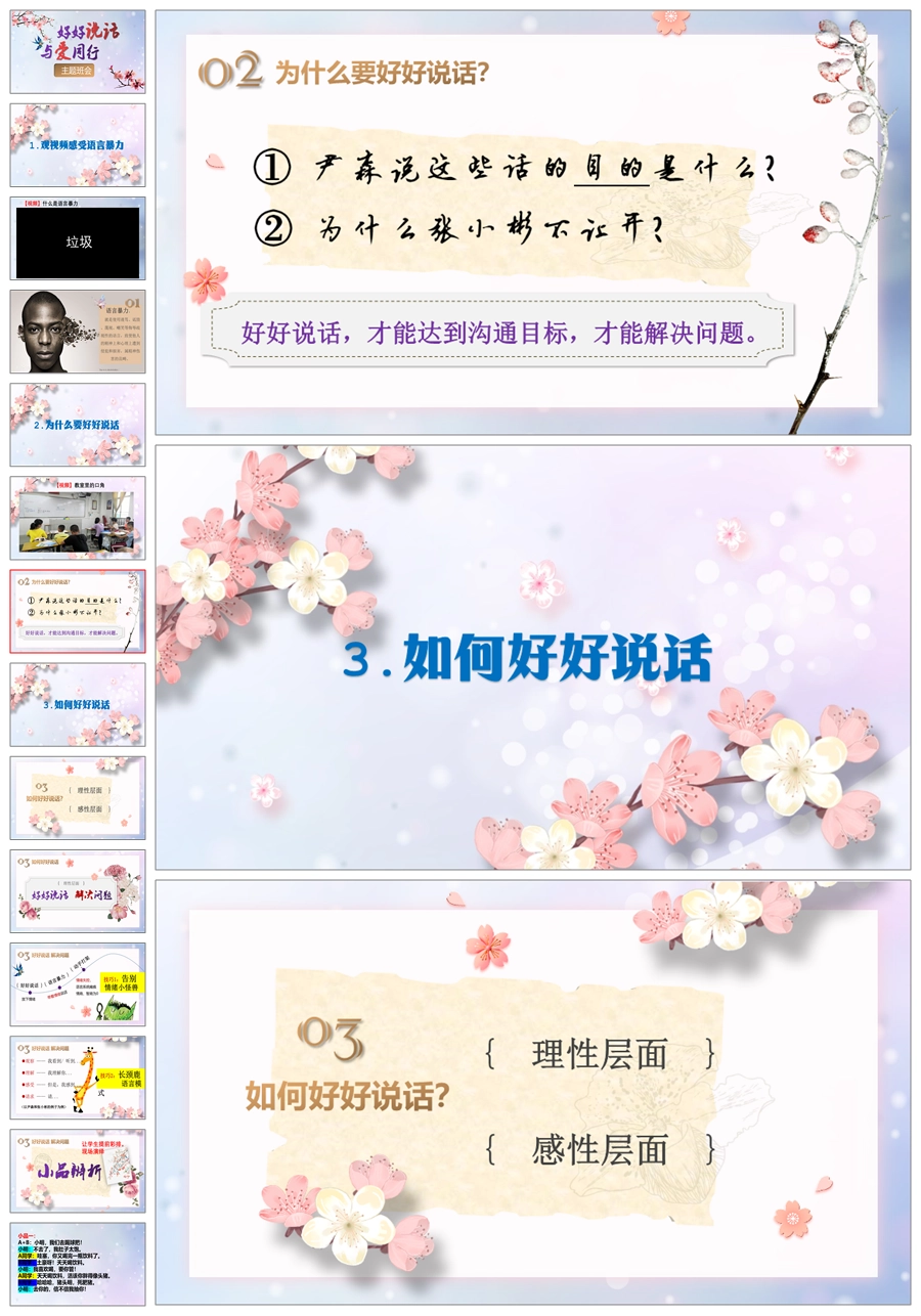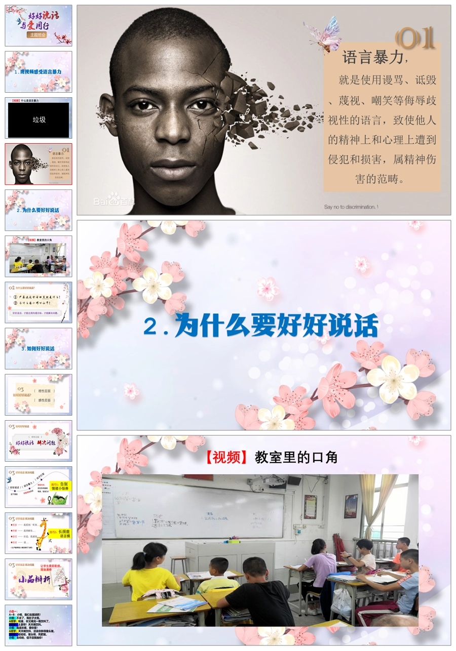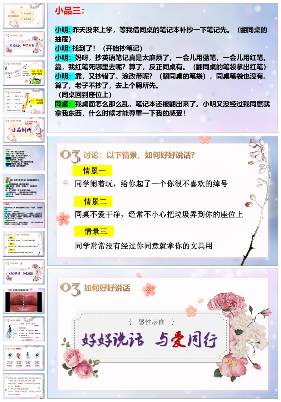 【5434】《好好说话 与爱同行》拒绝语言暴力主题班会ppt课件+教案+视频+小品剧本