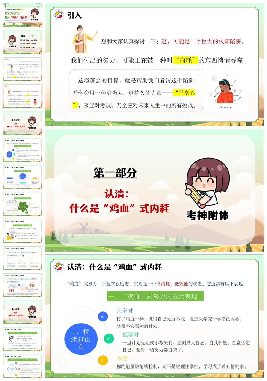 【5438】《考试平常心,拒绝“鸡血”式内耗》考前心态调整心理健康主题班会ppt课件+教案
