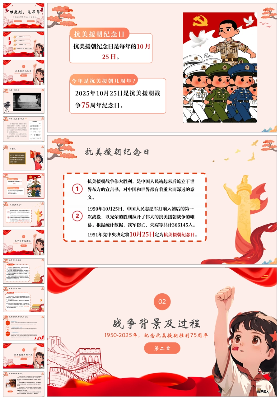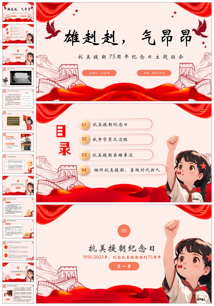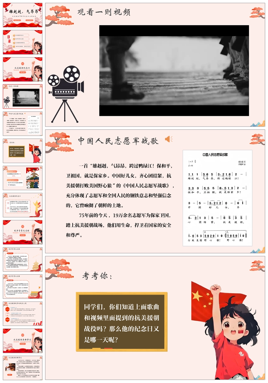 【5453】《雄赳赳气昂昂(小学抗美援朝)》爱国主义教育主题班会ppt课件+教案