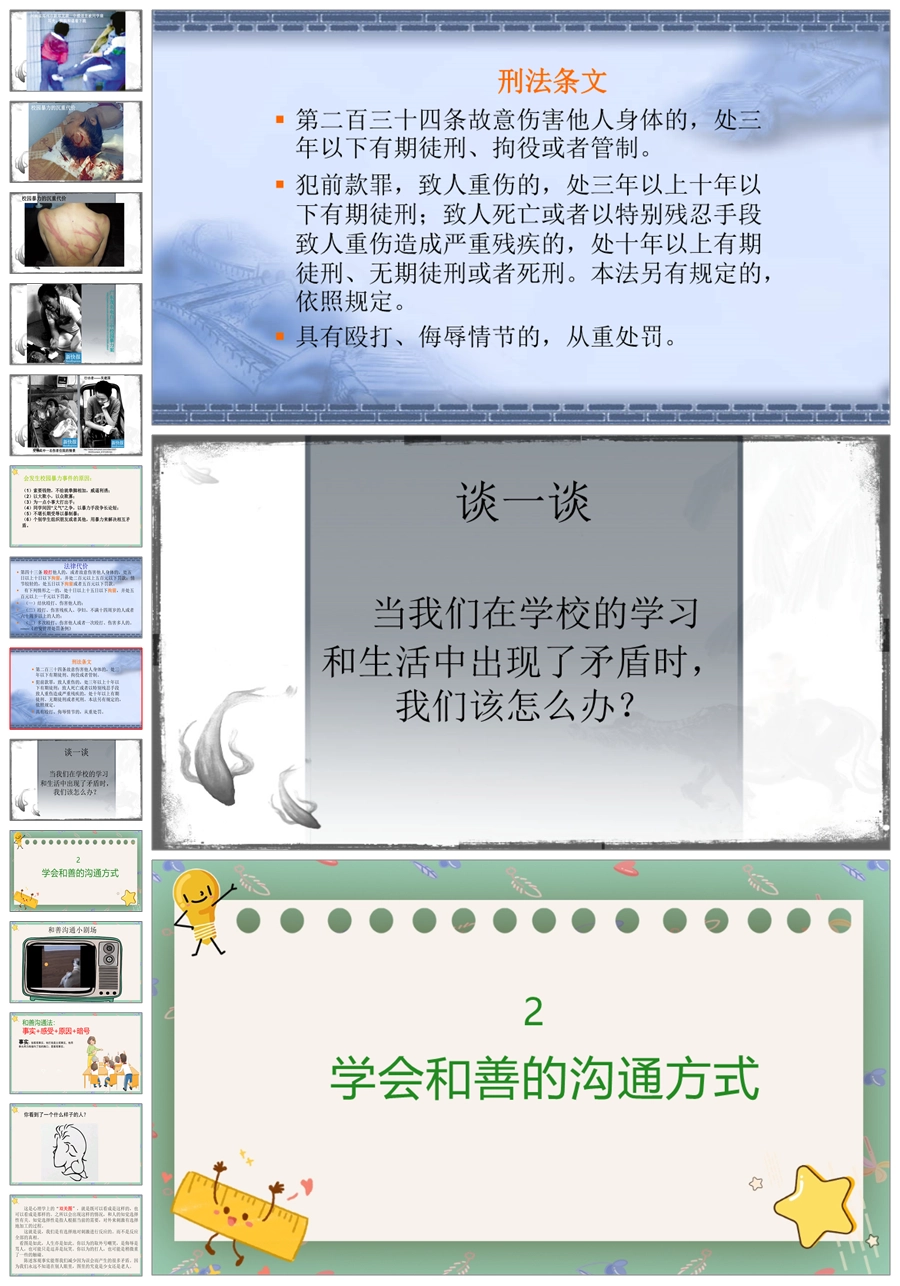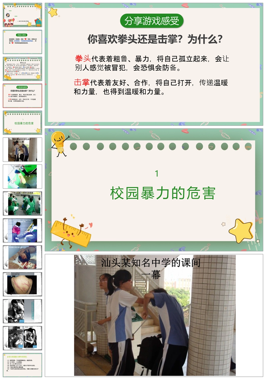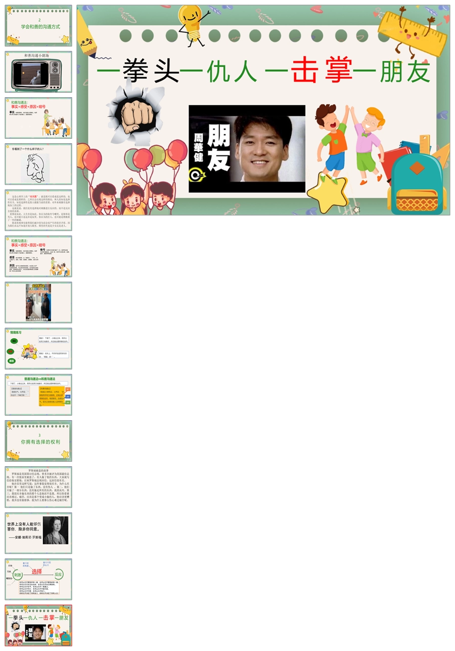 【5454】《一拳头一仇人,一击掌一朋友》拒绝打架斗殴主题班会PPT课件+发言稿