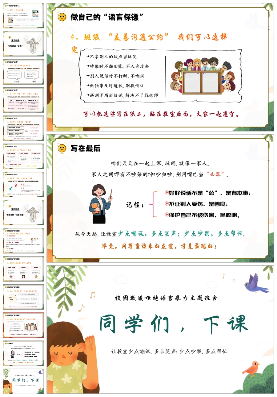 【5460】《嘴巴也能“伤”人》拒绝语言暴力主题班会ppt课件+教案+视频