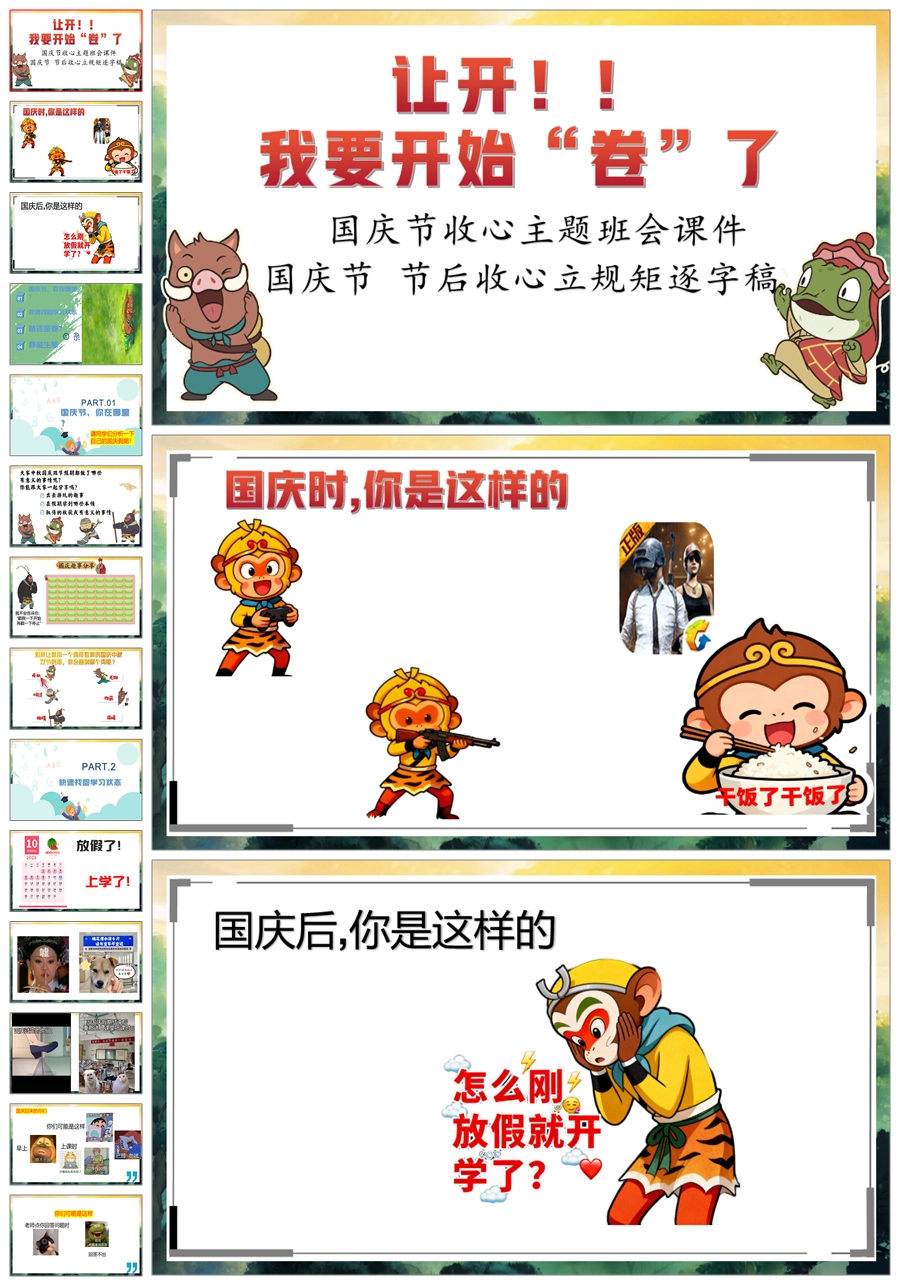 【5443】《让开!我要开始“卷”了》国庆节收心主题班会ppt课件+发言稿