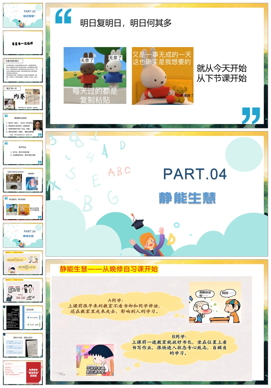 【5583】《自习的静成长的劲》竹子定律班会励志主题班会PPT课件+发言稿