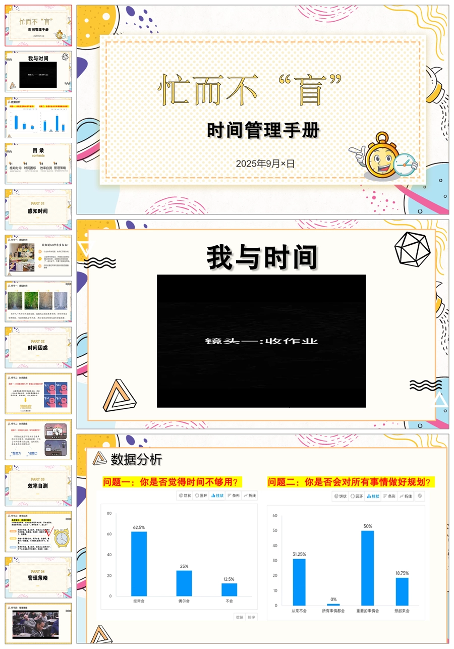 【5446】《时间管理忙而不盲》习惯养成时间管理主题班会ppt课件+发言稿