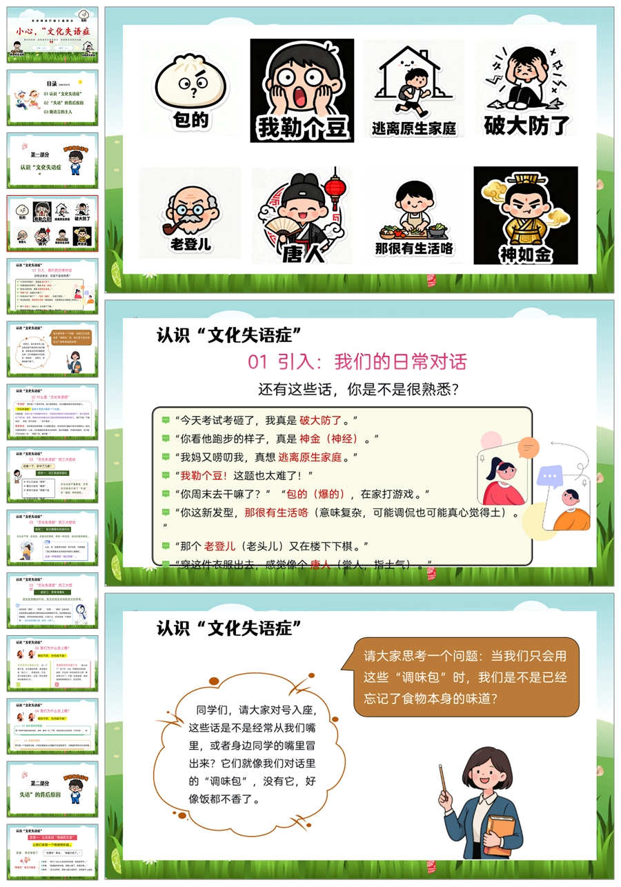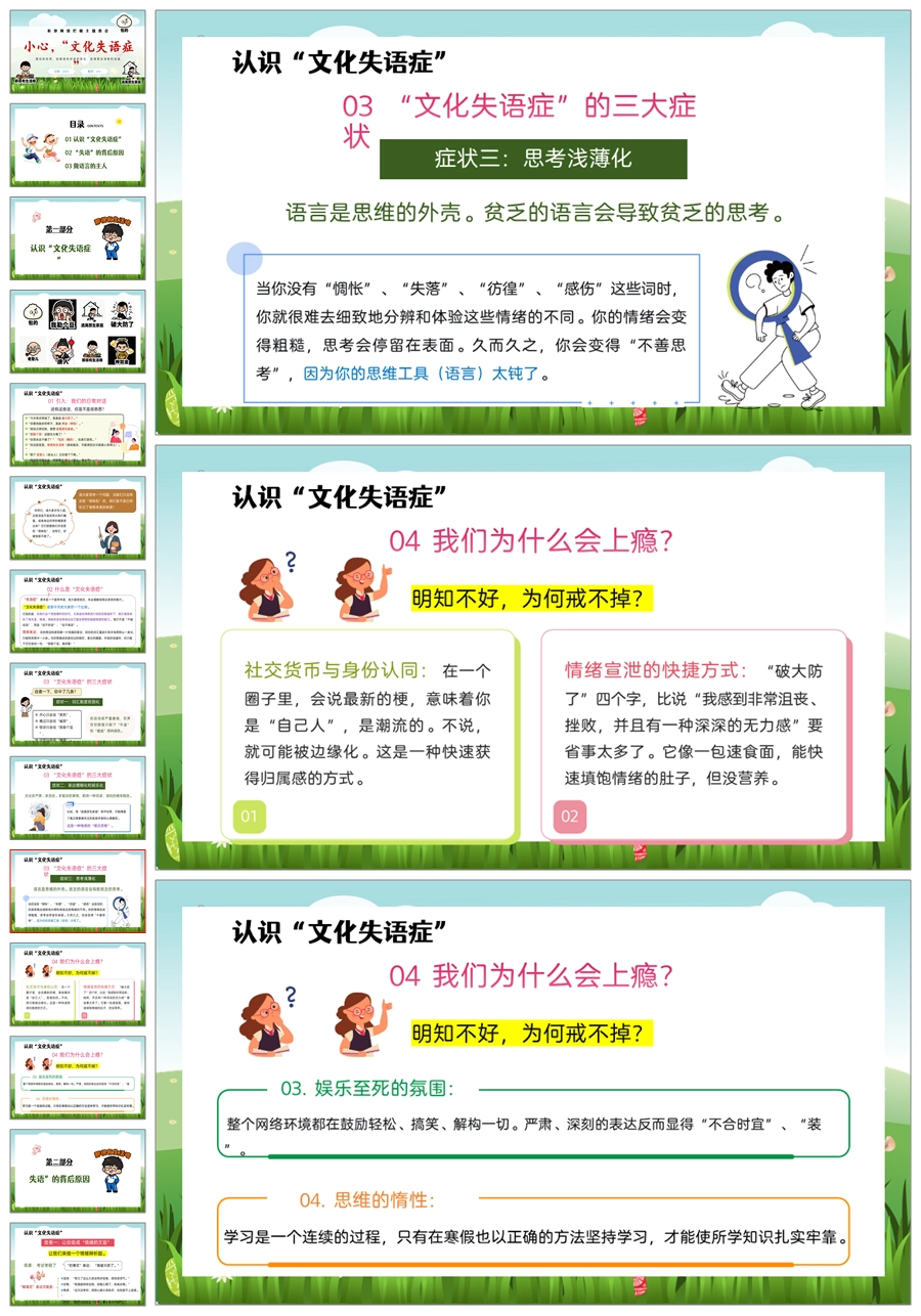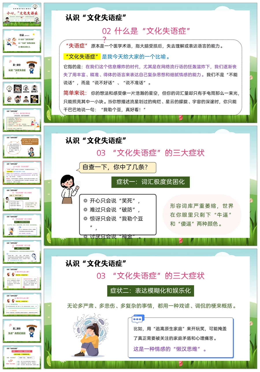 【5452】《小心,“文化失语症”》拒绝网络烂梗主题班会ppt课件+教案