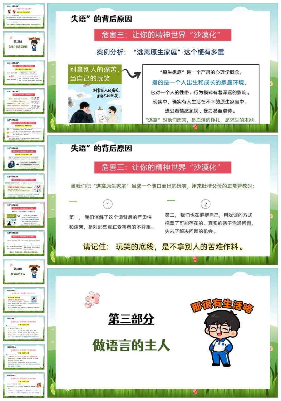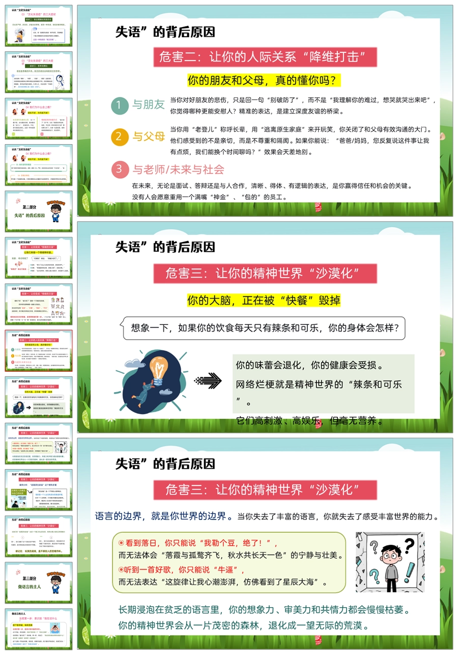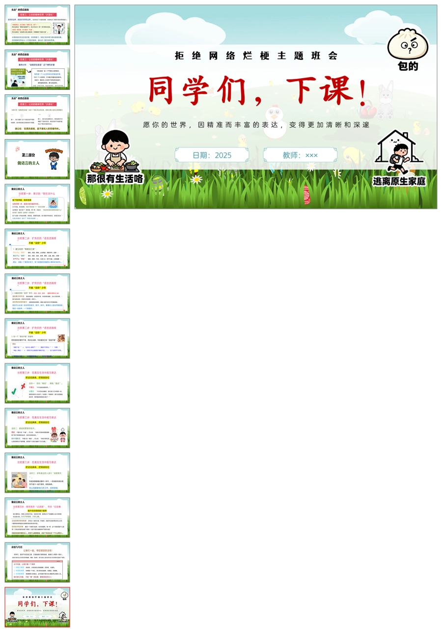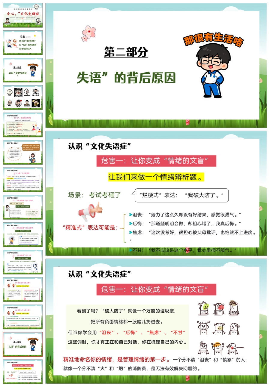【5452】《小心,“文化失语症”》拒绝网络烂梗主题班会ppt课件+教案