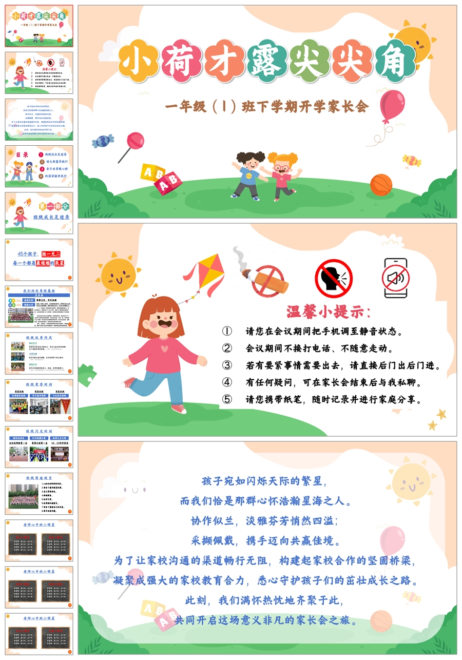 【5466】一年级下学期开学家长会《小荷才露尖尖角》语文一年级下学期家长会ppt课件+发言稿+暖场视频
