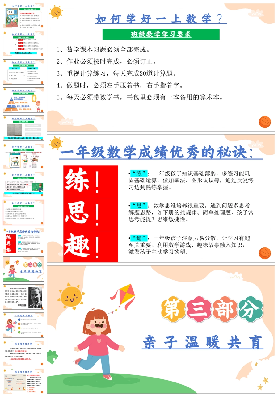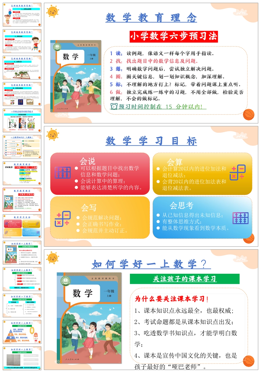 【5471】一上期中家长会《小荷才露尖尖角》数学-人教版一年级上学期家长会ppt课件+发言稿+暖场视频