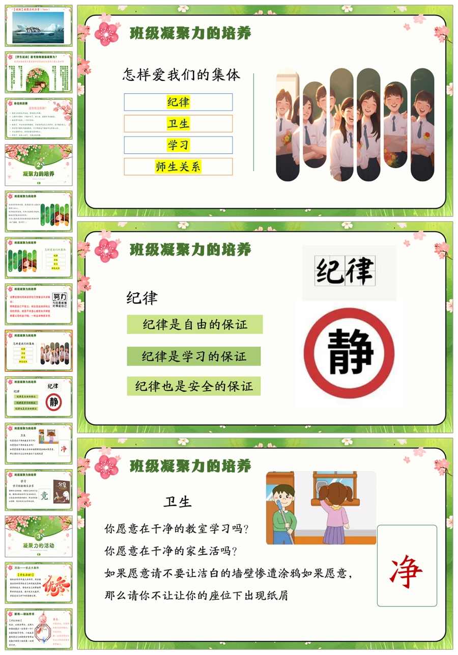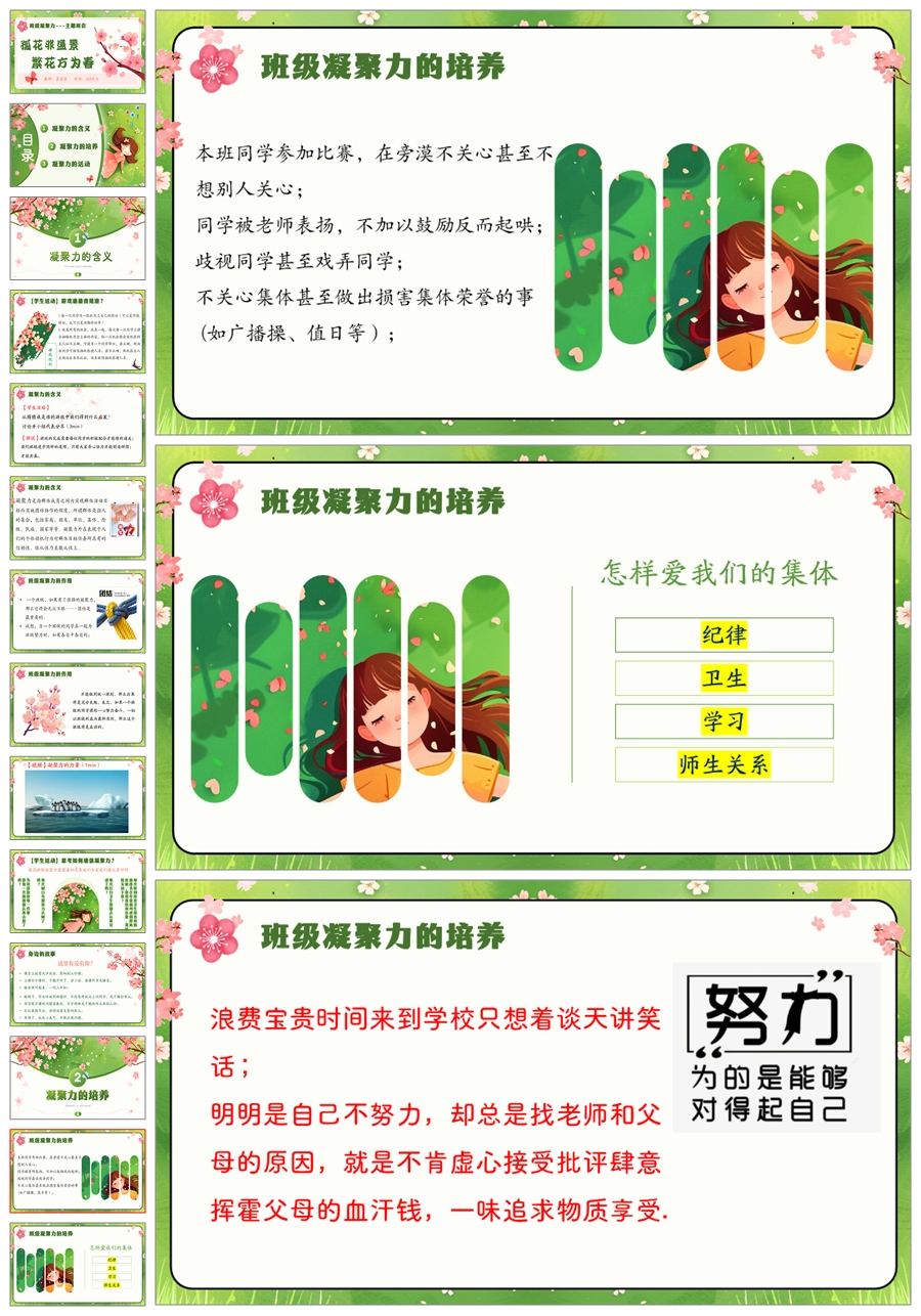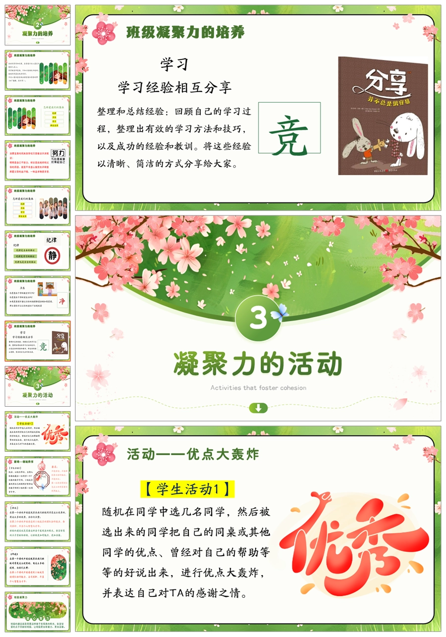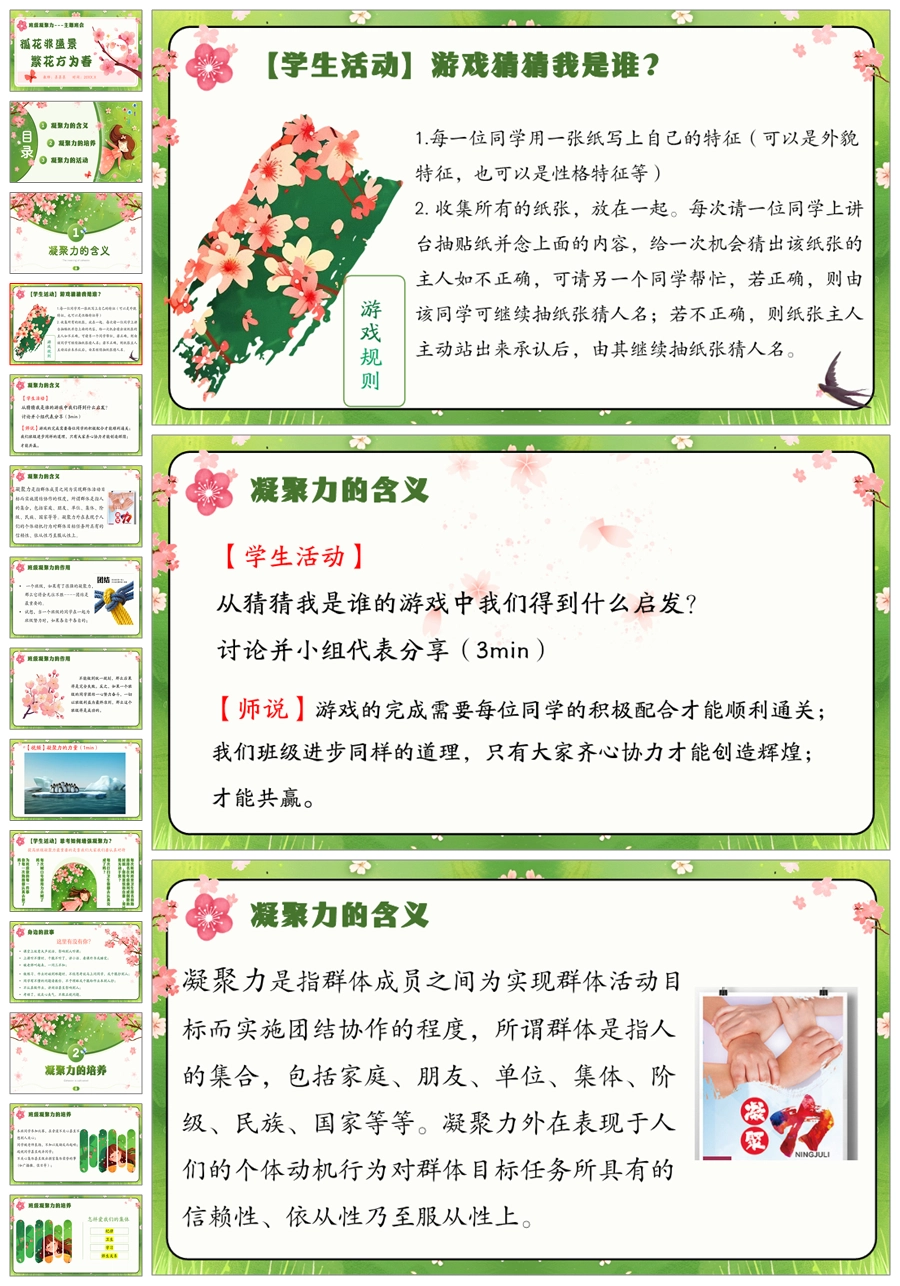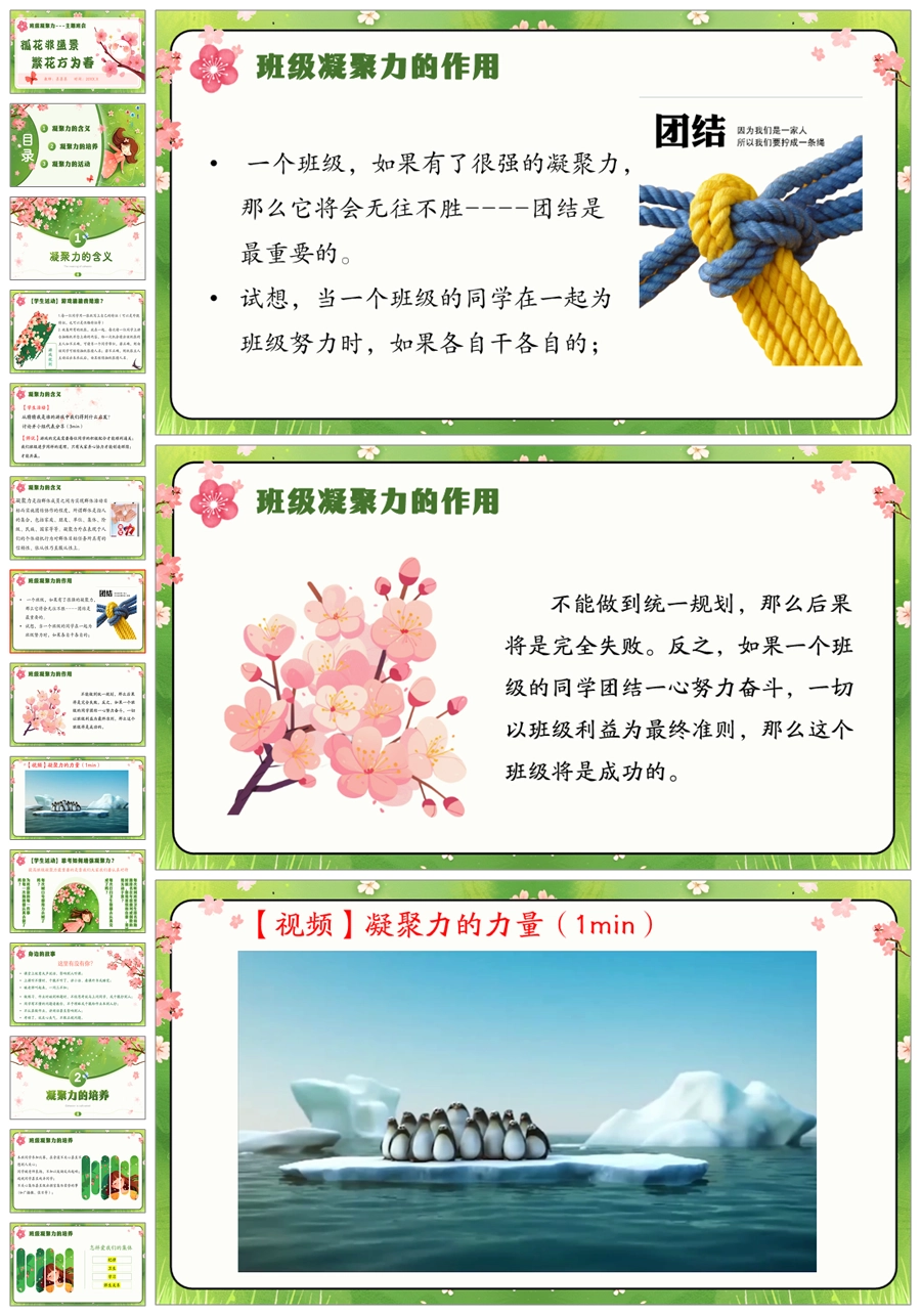【5492】《孤花非盛景,繁花方为春》班级凝聚力主题班会ppt课件+教案+视频
