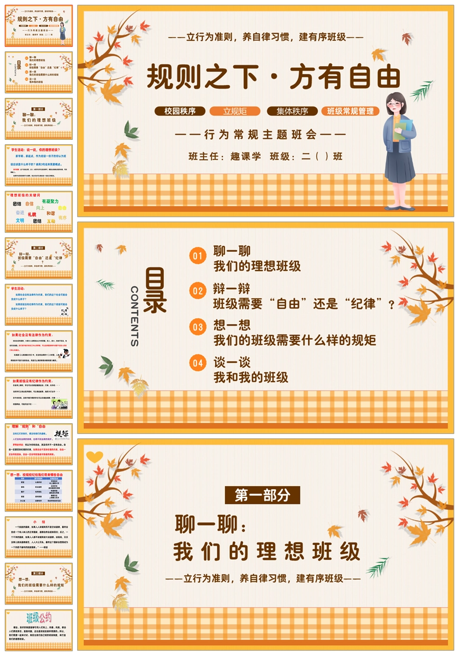【5493】《规则之下,方有自由》纪律班会主题班会ppt课件+发言稿