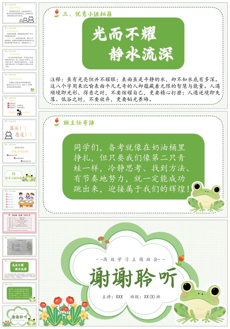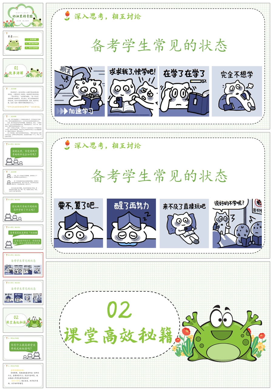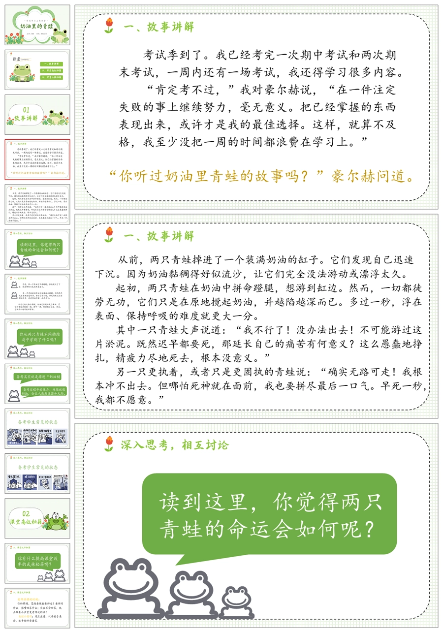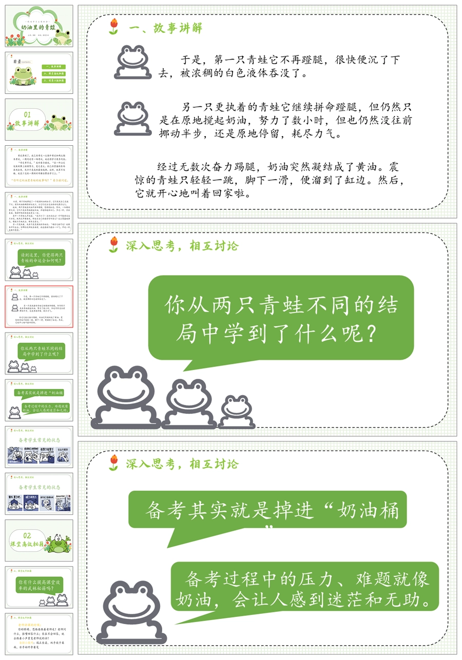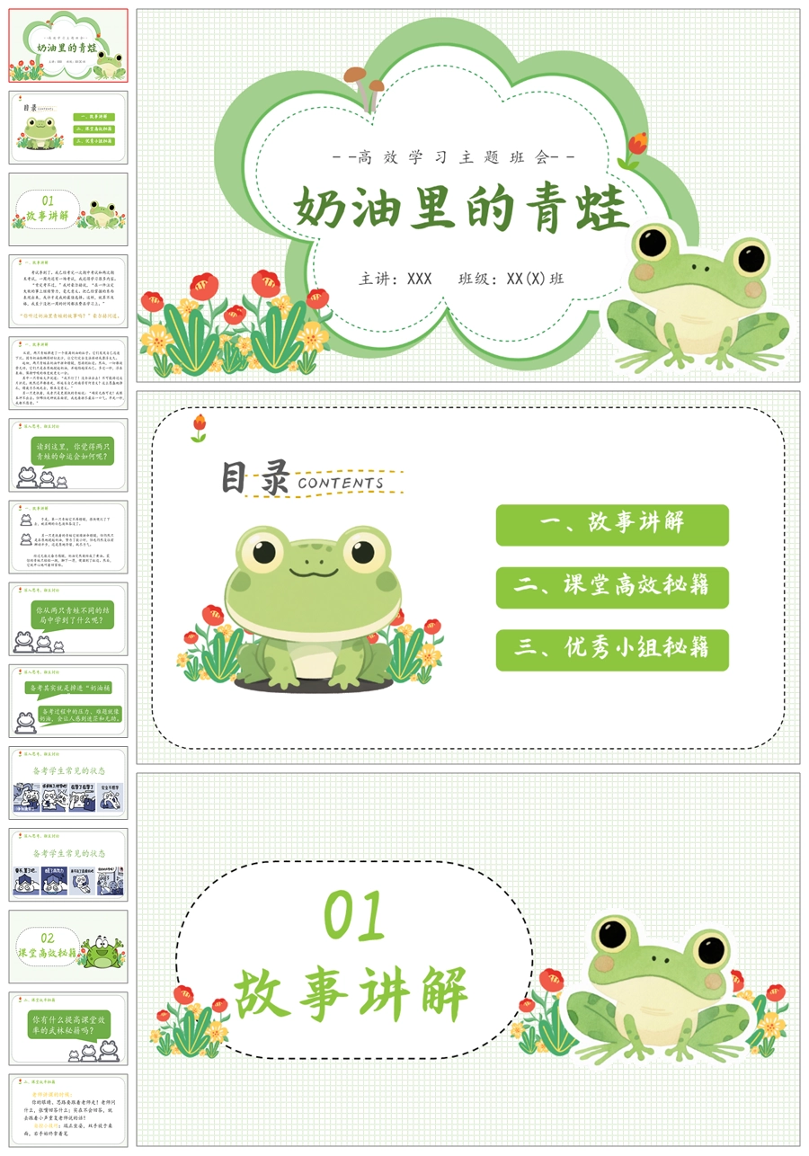【5496】《奶油里的青蛙》高效学习励志教育主题班会ppt课件+发言稿