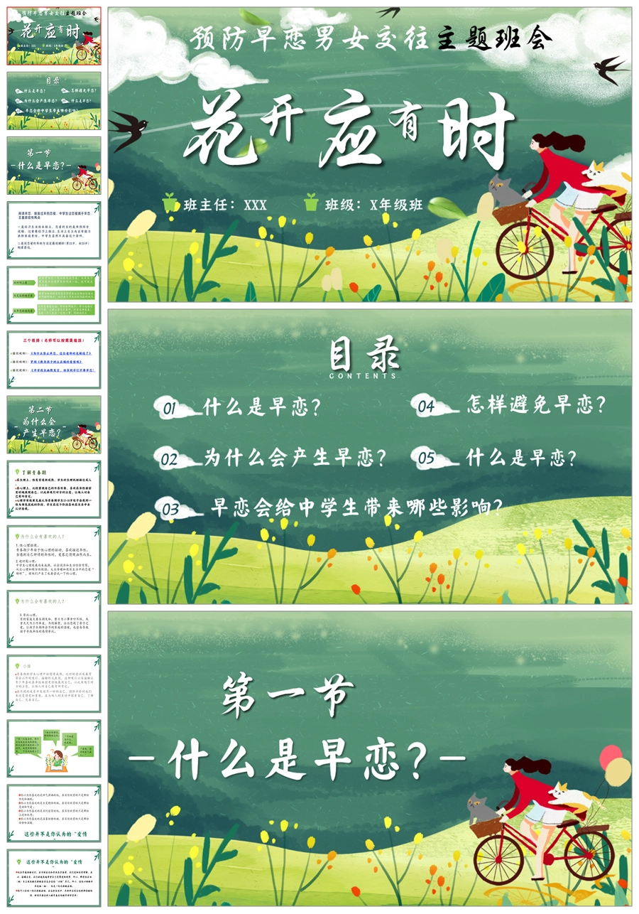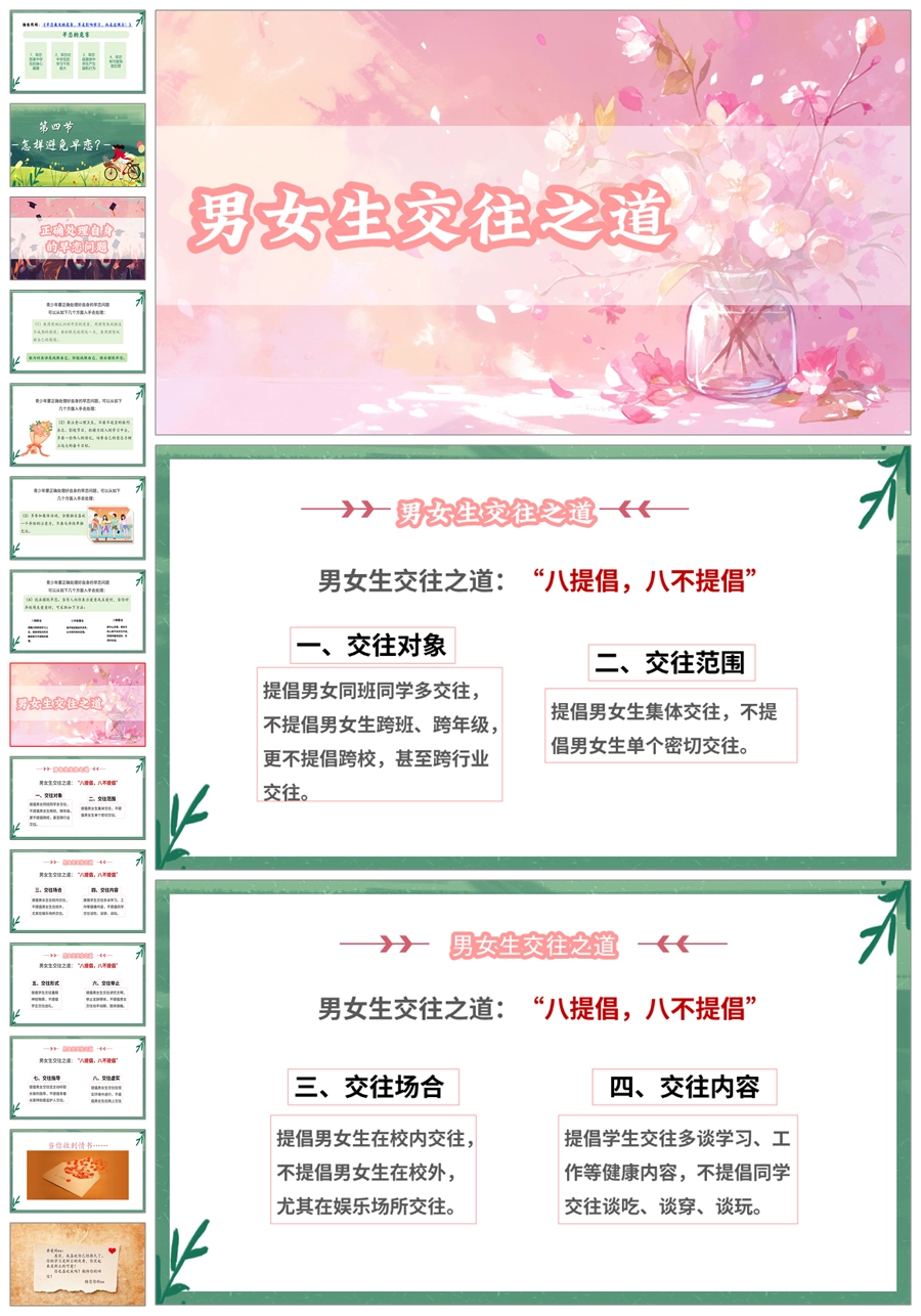 【5511】【早恋话题】《花开应有时》预防早恋男女交往主题班会PPT课件(课件+教学设计)