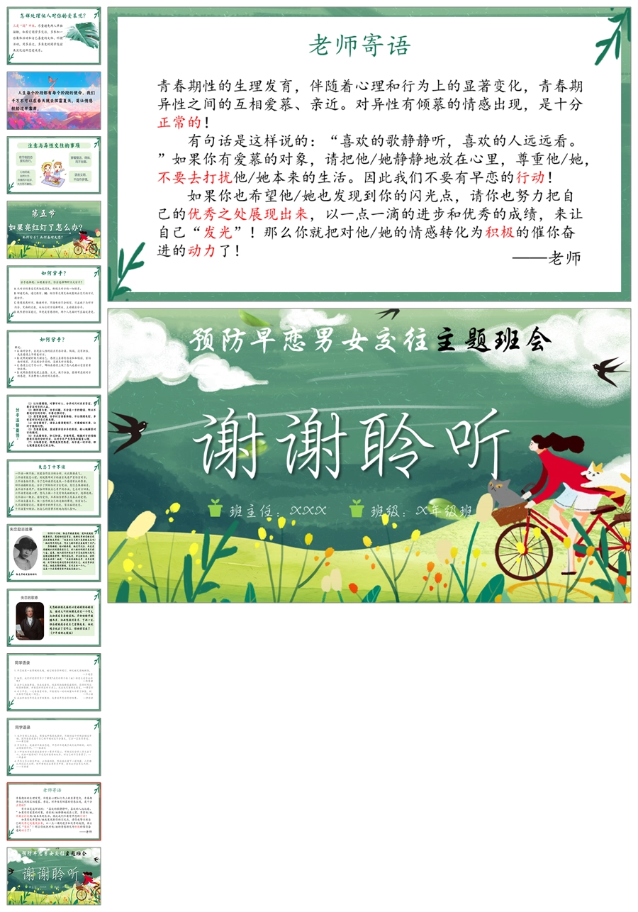 首页 通用班会 【5511】【早恋话题】《花开应有时》预防早恋男女交往主题班会PPT课件(课件+教学设计)