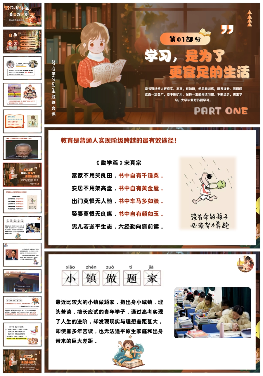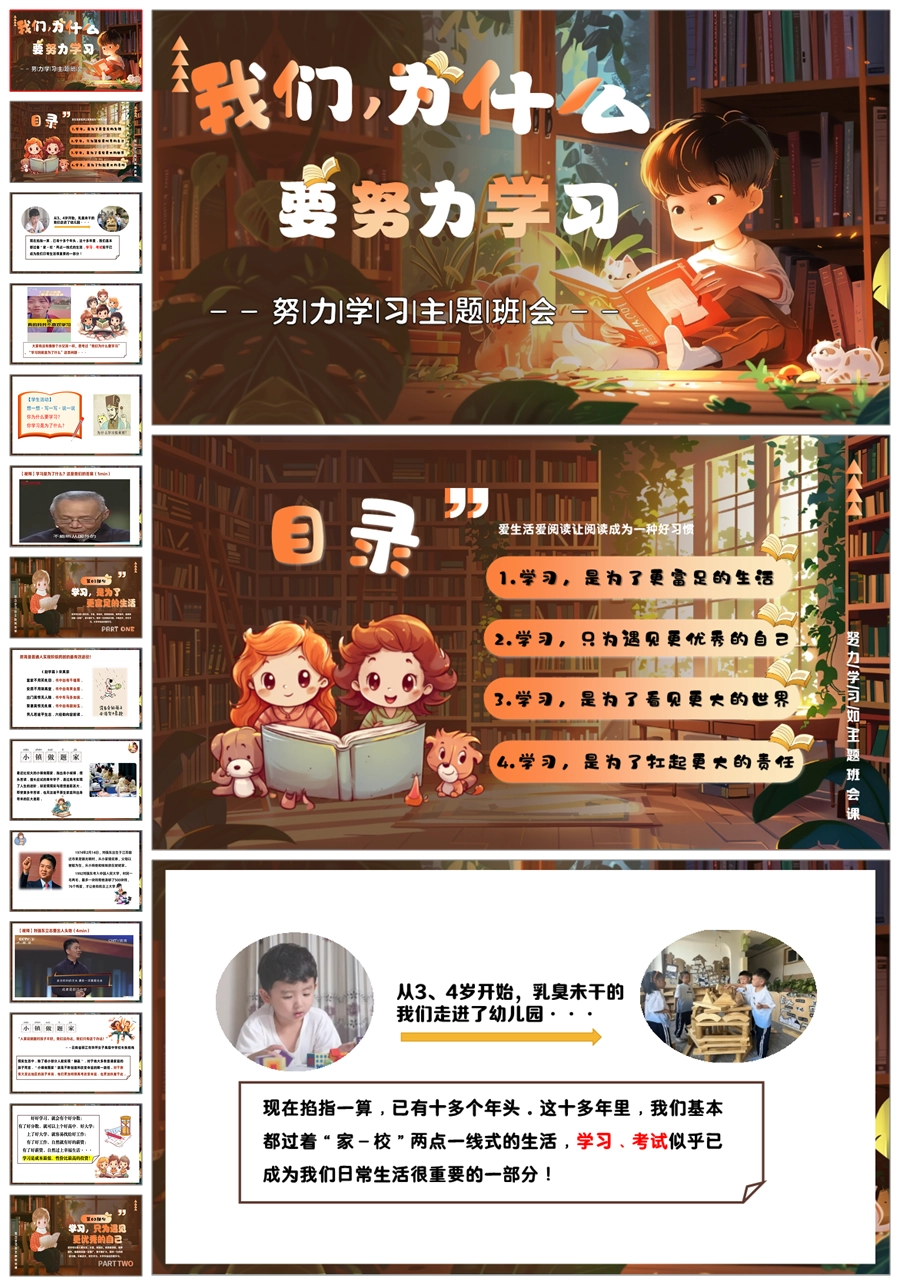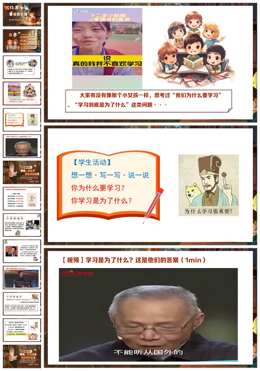 【5514】《我们,为什么要努力学习》励志教育主题班会ppt课件+教案+发言稿+视频