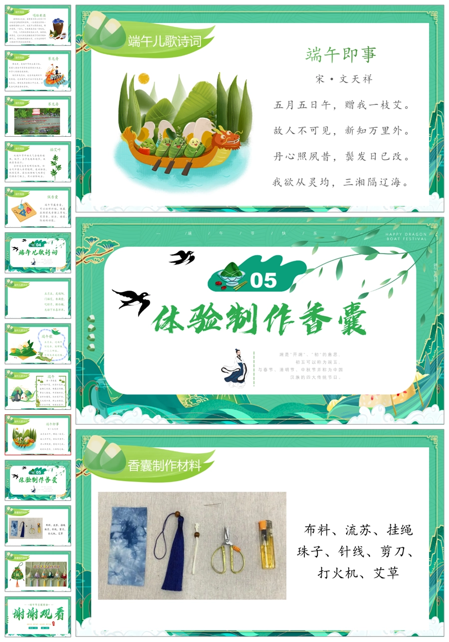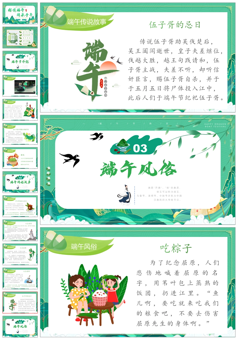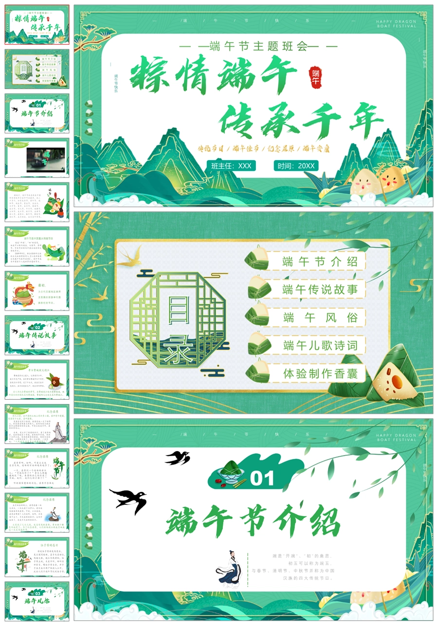 【5526】《粽情端午,传承千年》端午节主题班会PPT+教案+发言稿+视频
