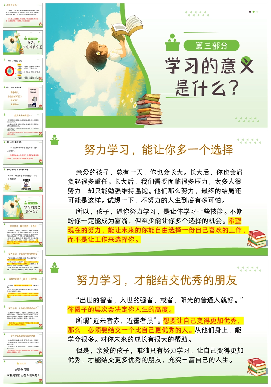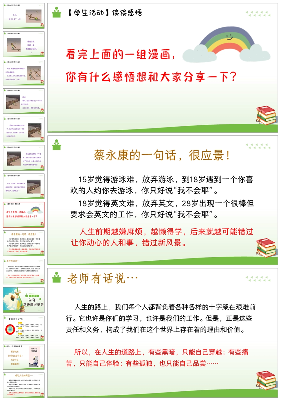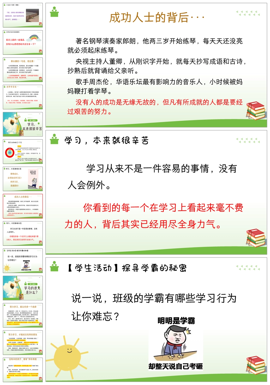 【5518】《学习很苦,但请坚持》励志教育主题班会ppt课件+发言稿+视频