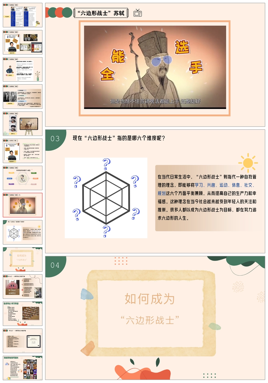 【5527】《“六边形战士”养成指南》励志教育主题班会ppt课件+发言稿+视频