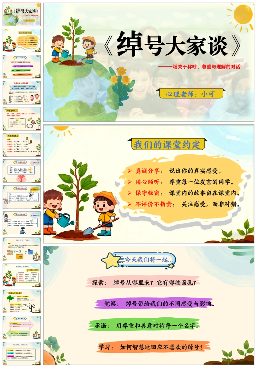 【5539】《绰号大家谈》取外号心理健康主题班会PPT课件+教案