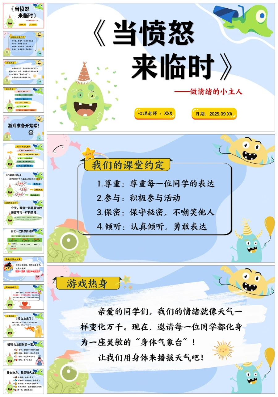 【5540】《当愤怒来临时》情绪控制心理课PPT课件+教案+发言稿